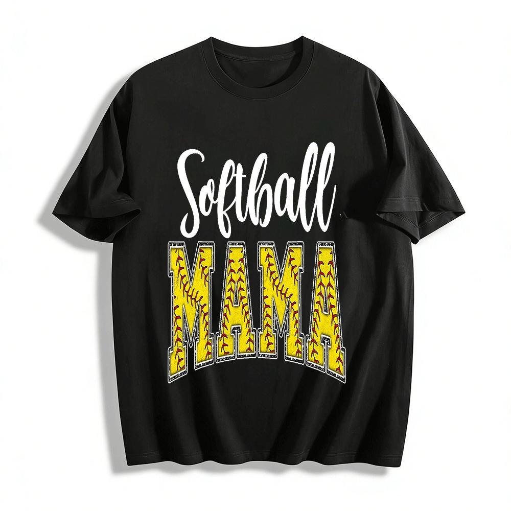 Softball Mama Baseball Pattern Print Casual Short Sleeve T-Shirt Pure cotton T-shirt