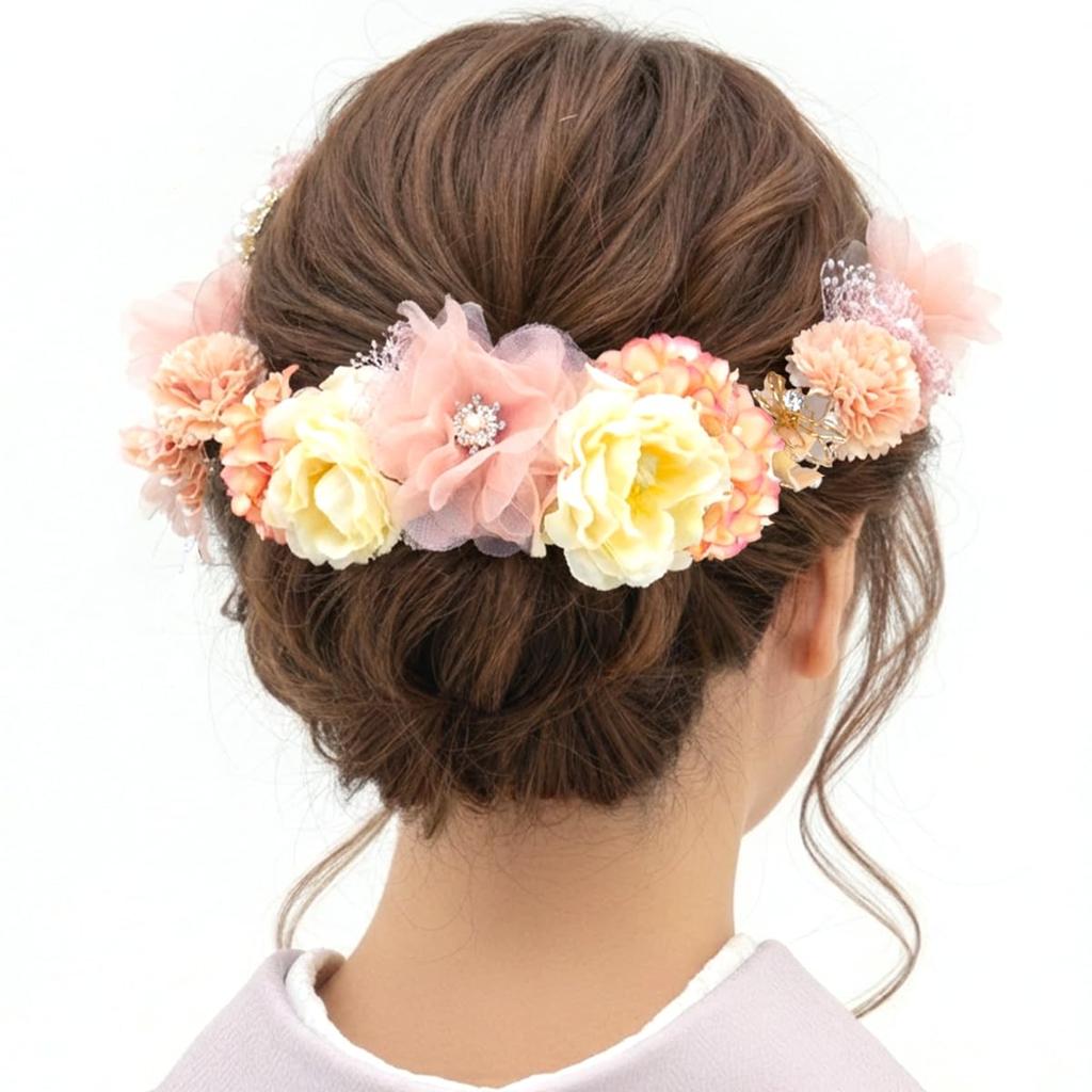 Haarschmuck-Set (3 Stück) für Furisode Kimono und die Volljährigkeitszeremonie (kk-354) - Weiß, Rosa, Stirnband, Anstecker (Rosa)
