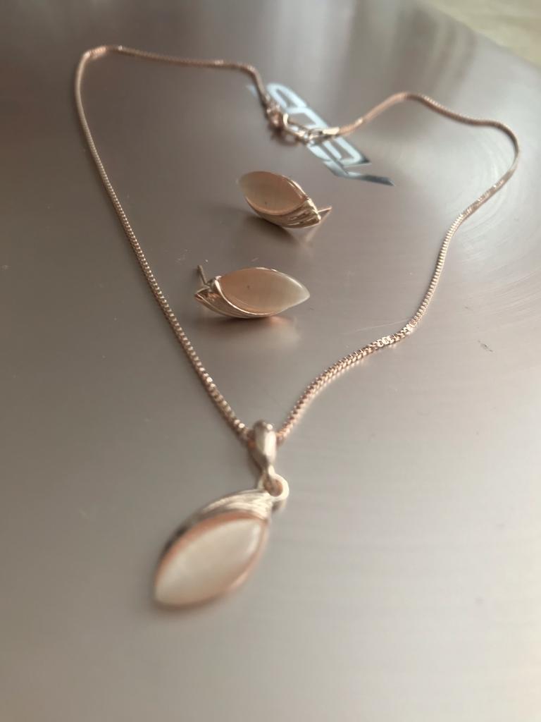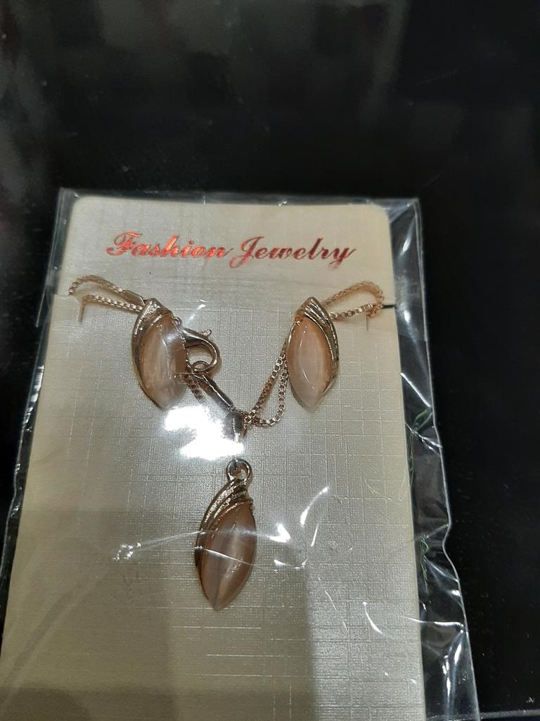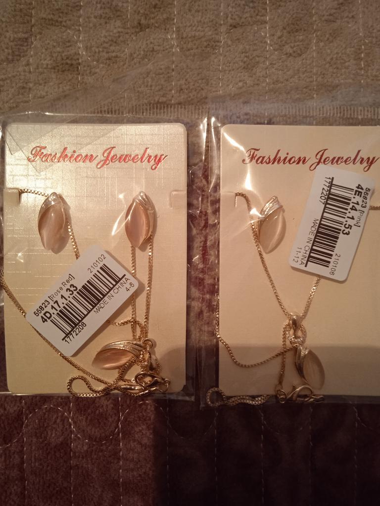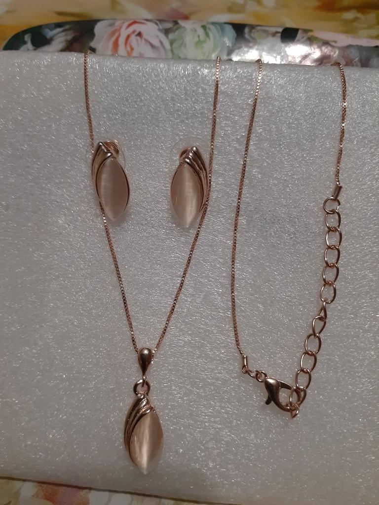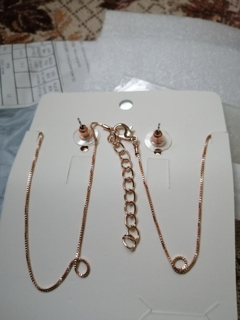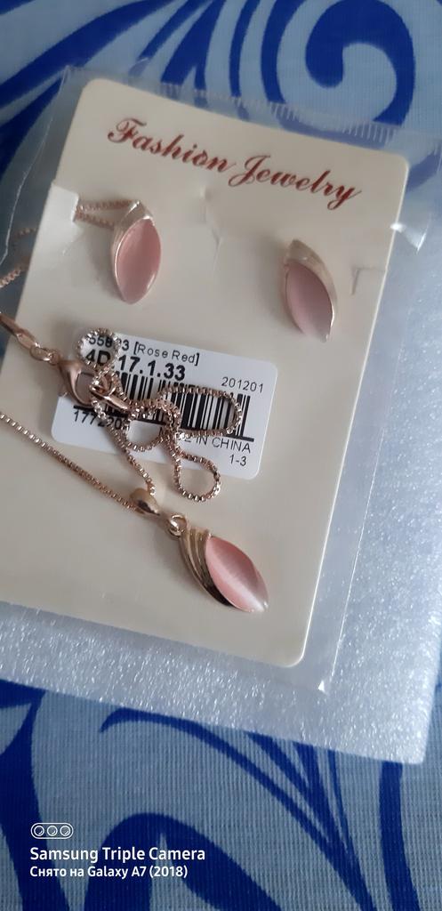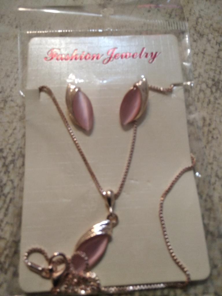 The set is very beautiful and fine. The necklace opens a little harder but that's all. I really like the necklace, its model. And I also like the pink side.