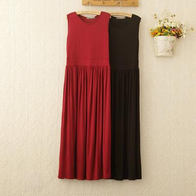 Plus Size L To 6XL Women's Dress Modal Sleeveless Tank Dress Pleated Sleepdress Mid-Length Waist-slimming Dresses Loose Homewear
