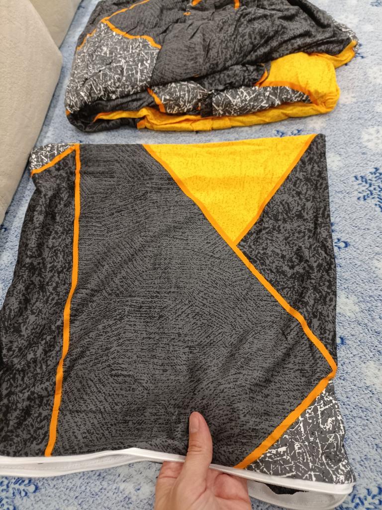 The cover arrived, the color of the fabric does not match. Instead of white pattern inserts, light gray with small stripes. The cover is sewn with high quality, there are ties for ties. The fabric is thin, stretchy, pleasant to the touch. Overall the product is good, I recommend it for purchase.