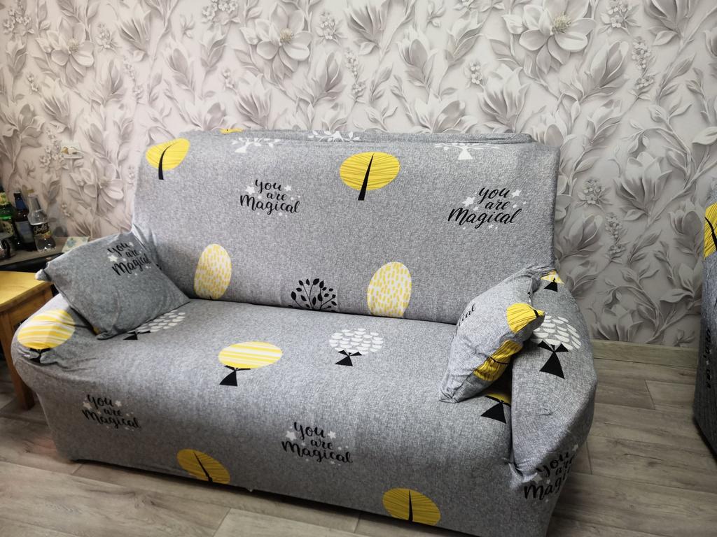 The size does not match on my sofa, 150 cm long, they barely pulled it on. They just tuned in to the chair. So we waited and this is the result.