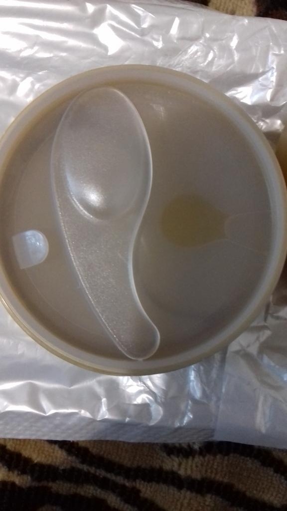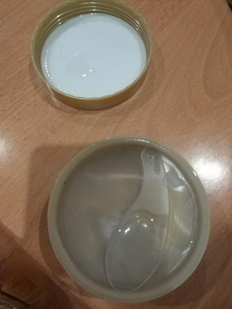 I received it after 3 weeks, the product corresponds to the description, there is a spoon so that it is convenient to take it out, I have not used it yet