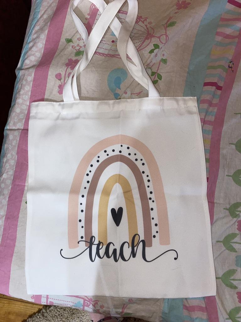 Teacher Rainbow Leopard Print Canvas Shopping Bag Gift for Teachers Fashion Women Shoulder Bags