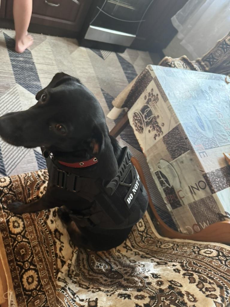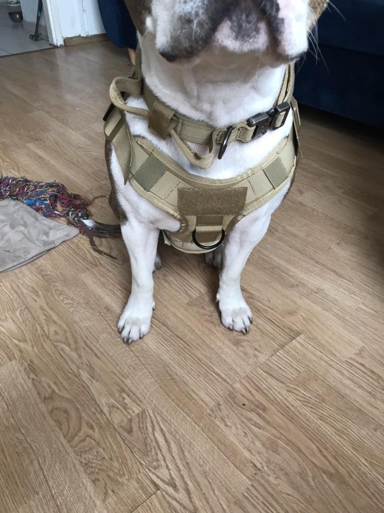 The dog is a little freaked out, but overall it's a pretty nice and high-quality harness.