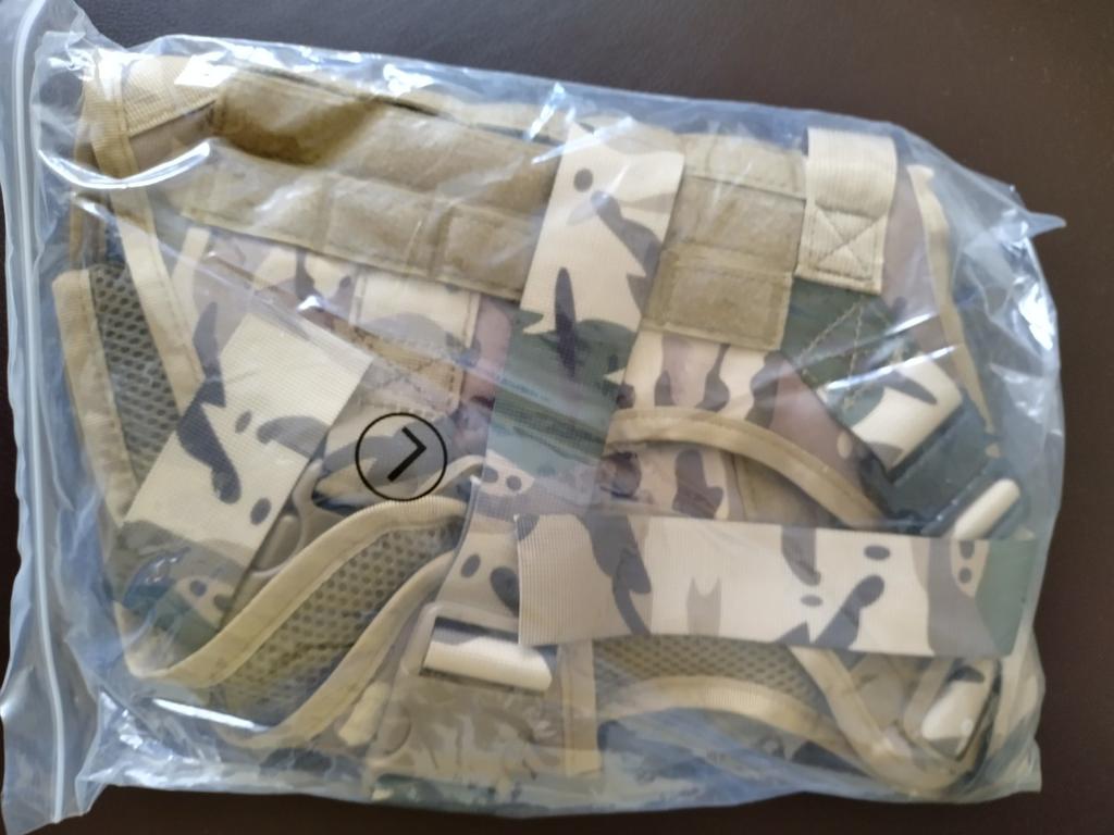 The dishes arrived well packaged. It makes a good impression. The snaps on one of my bags don't hold up that well under load. Arrived quite quickly. Fit according to table gone. Really had to set it as small as possible If I were to order again I would choose a size smaller. My dog is a Malinois male.