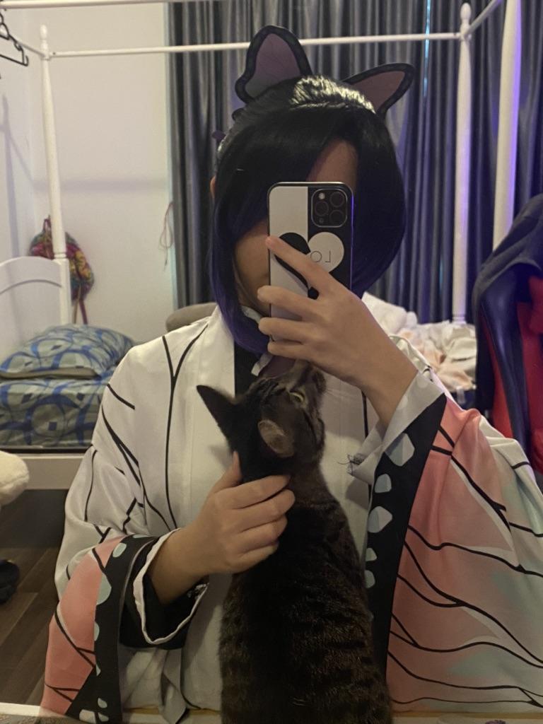 Japan Anime Demon Slayer: Kimetsu No Yaiba Kochou Shinobu Cosplay Wig Kochou Shinobu Purple Black Hair Wig Costumes + Hairpin