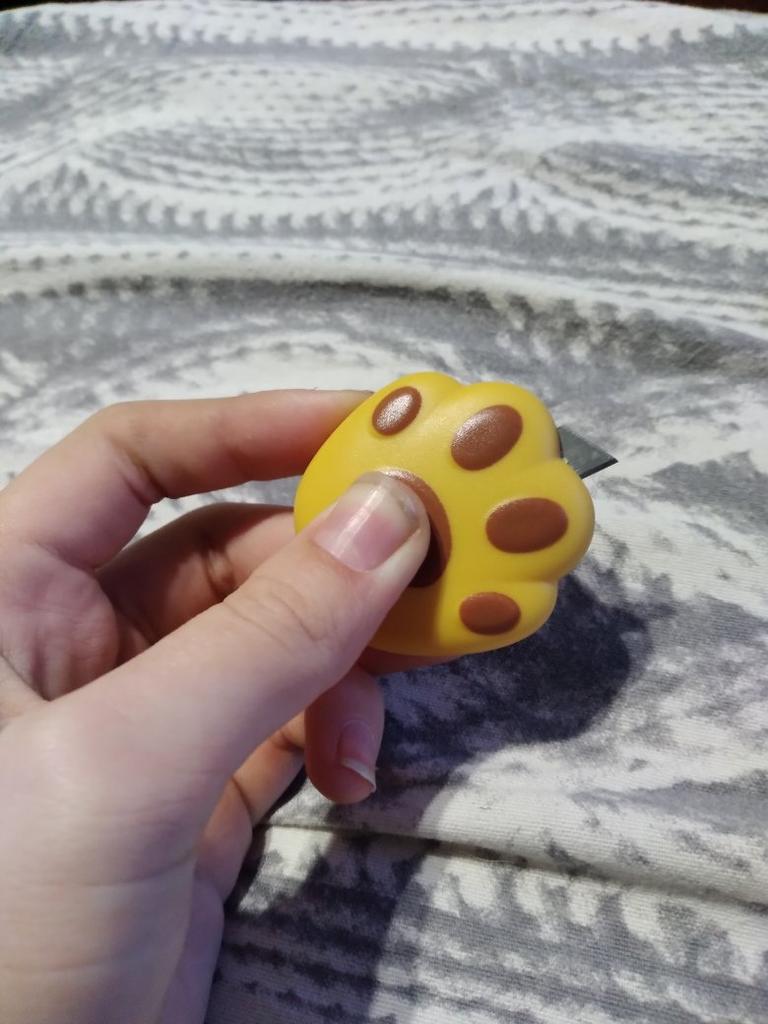 The parcel arrived in Zaporozhye in one and a half months It was packed well, so the parcel was not damaged on the way Nine parcels were combined into one Stationery knife in the shape of a paw, ordered purple, came brown 🤦♀️ In general, it is sharp, it performs its functions well Thanks to the seller and cheers 👍