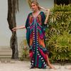 2022 Multicolored Kaftan Bohemian Printed V-neck Batwing Sleeve Street Wear Maxi Dress Women Beach Wear Swim Suit Cover Up Q1342