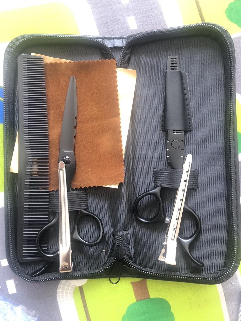 SANGELAR 6 Inch 9pcs Set Black Scissors Cutting Shear Thinning Scissors High Quality Hair Scissors Haircut Shear Barber Clipper Set