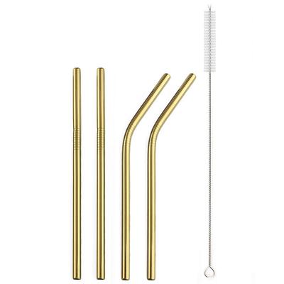 Metal Gold Straw 4Pcs With Cleaner Brush Bar for Drinkware 304 Stainless Steel Straw Reusable Drinking Straws