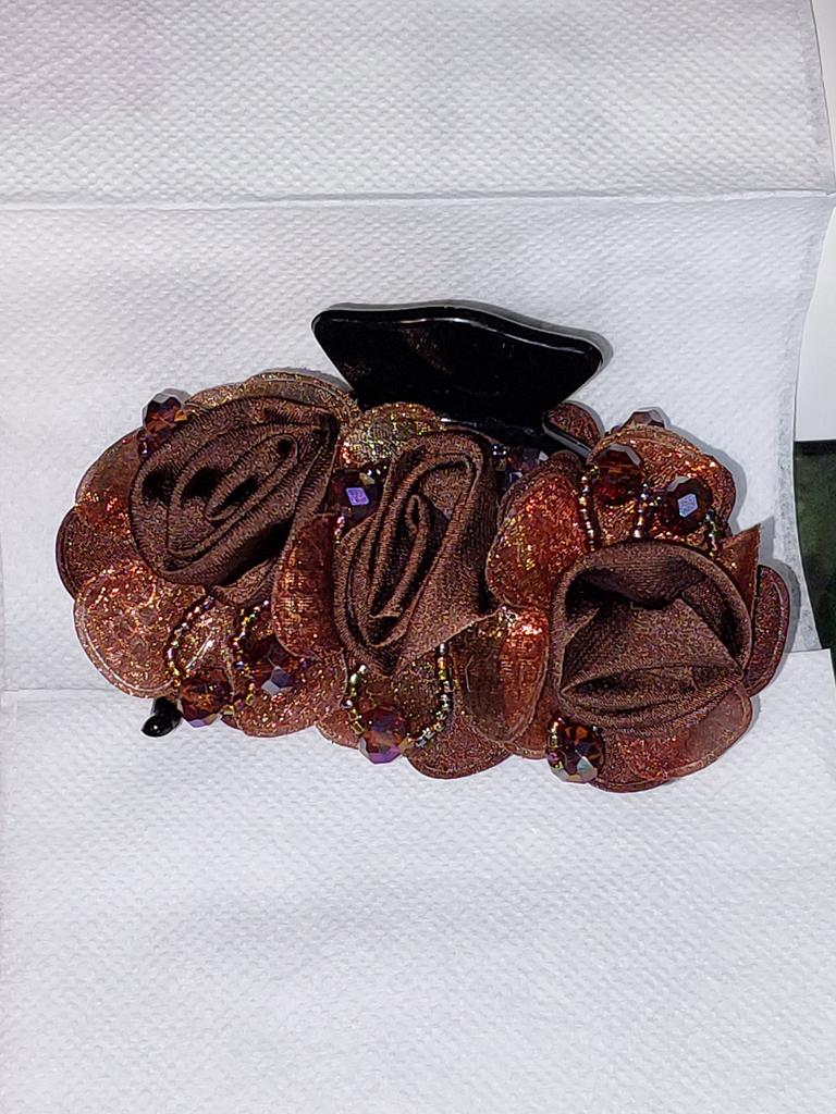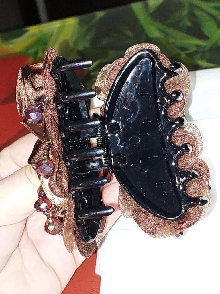 Non-slip Crossing Teeth Women Hair Claw Flower Beads Decor Bow Bath Hair Claw Styling Tool