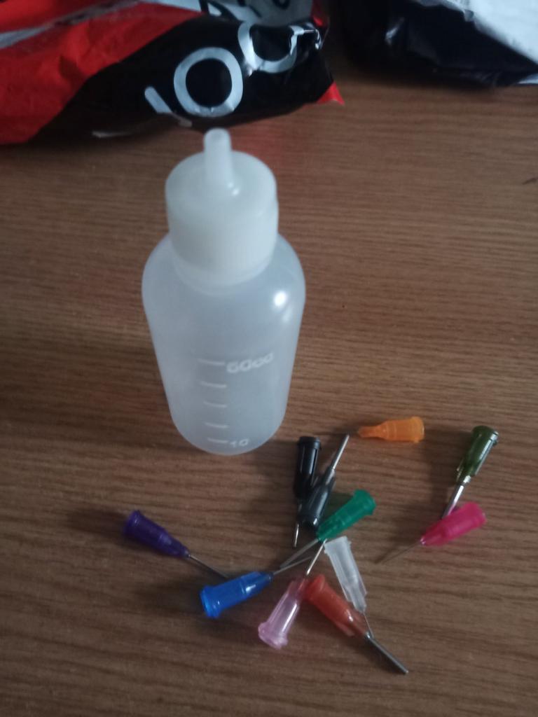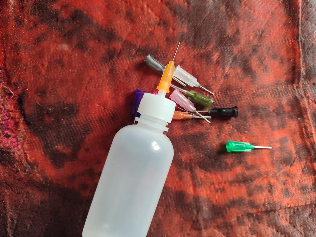 A very convenient dispenser for cyanoacrylate glue such as Cosmofen and Okong. Much more convenient than the original packaging.