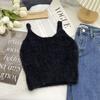Women's Knitted Plush Elegant Slim Camisole Solid Color Temperament Sleeveless U-Neck Versatile Cropped Top