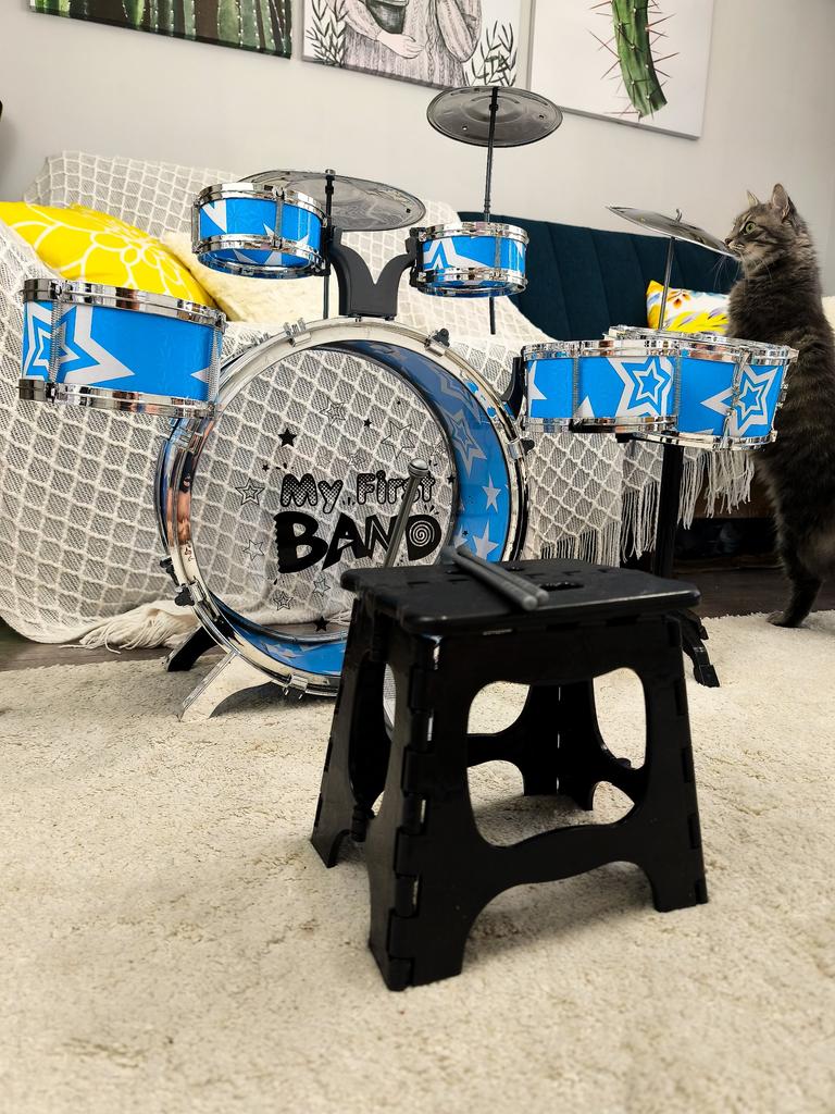 6-Piece Kids Drum Set Drum Kit Jazz Drum Set with Folding Step Stool Cymbal Pedal Drumsticks