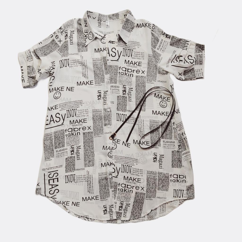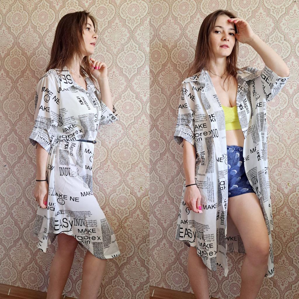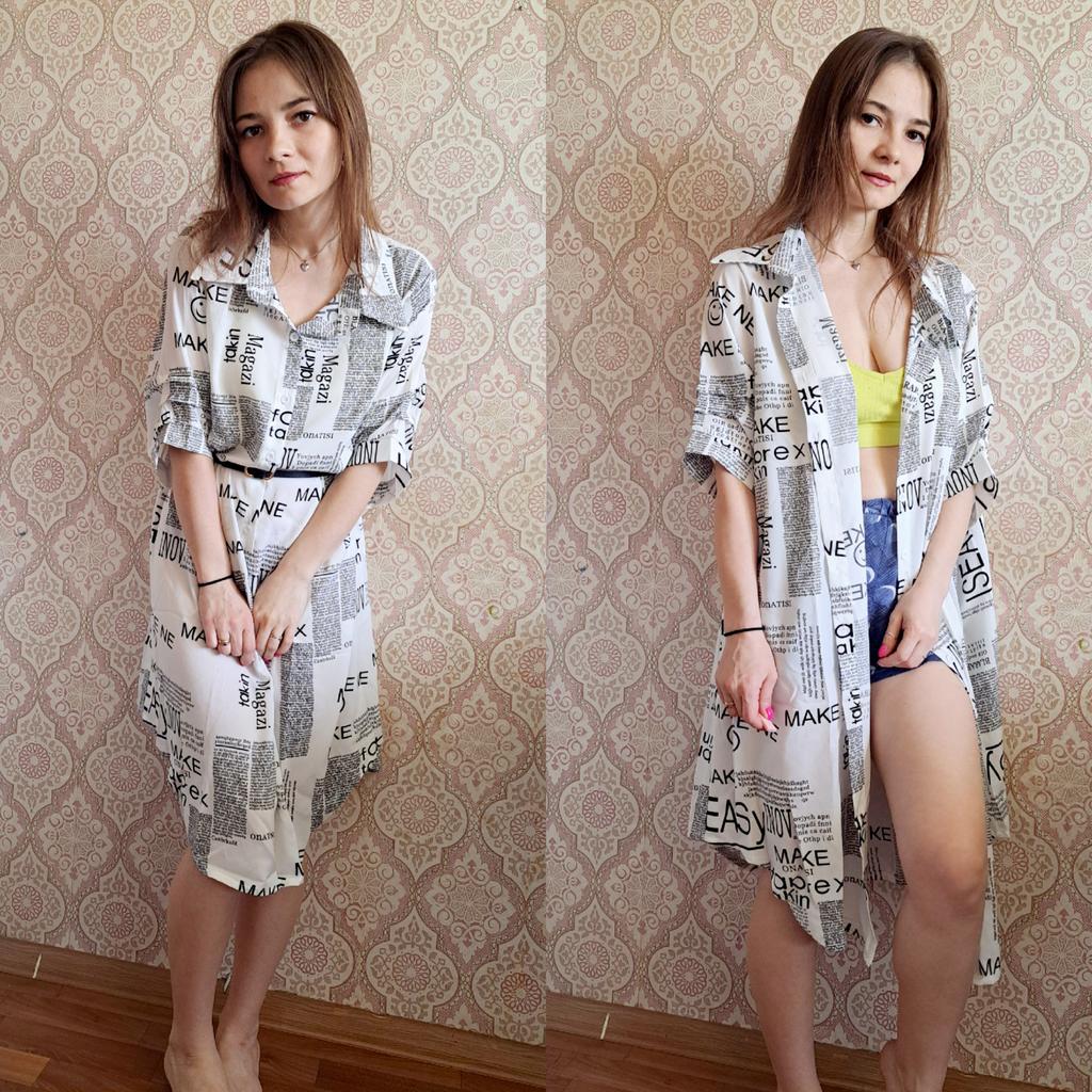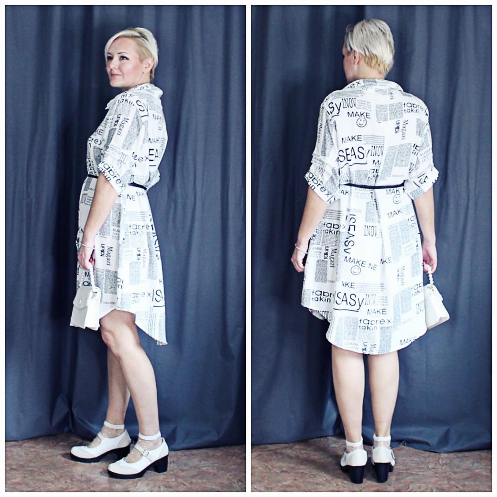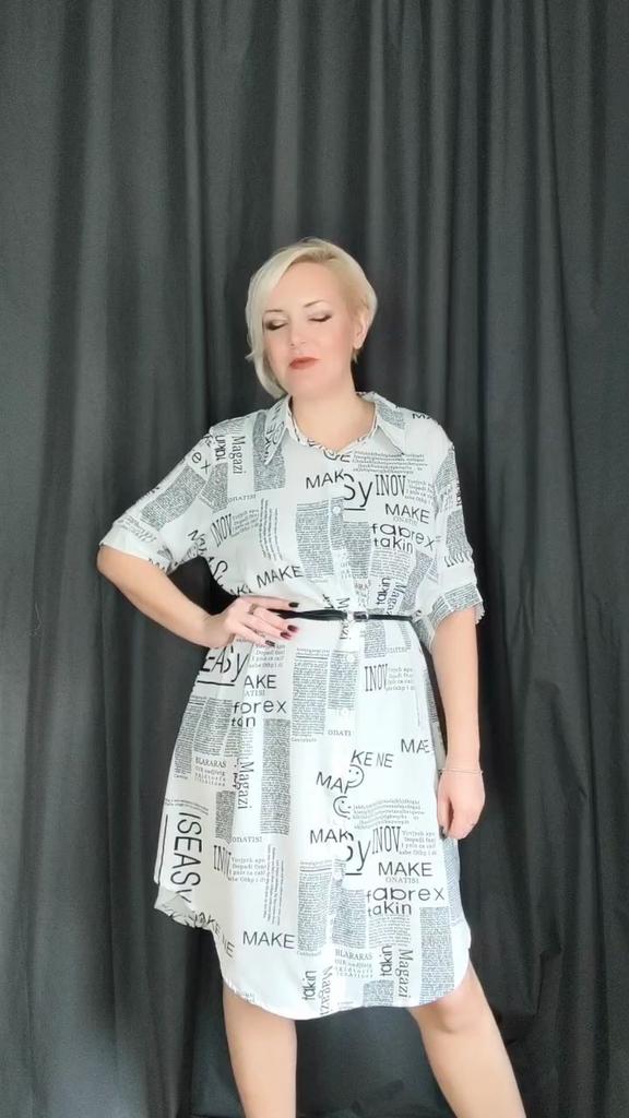 The shirt dress with the letter print and belt π€©π€©π β»οΈDelivery time: 18 days to Germany. β»οΈβ»οΈScope of delivery: The delivery includes a short-sleeved casual blouse in the appropriate color and size. It is available in 3 different colors in sizes from M to 4XL. I ordered the product in white in size M and it fits me perfectly ππππ―π―π―π― . It looks very nice!!!ππππThe color is as shown. The stand-up collars emphasize the design of the product. I normally wear a size 36. I weigh 55kg and am 167cm tall (90-65-90 cm), with a cup size of 75B. You must order the product 1 size larger than your original size. It runs small. β»οΈβ»οΈ The blouse is perfect for everyday wear, for the office or restaurants. It is very easy to combine.ππ It looks great with jeans, trousers or on its own. ππ.I liked the design the most, namely this pattern print. It looks extraordinary.π I like these letters π―π―π―π―π! β»οΈMaterial composition: Polyester and cotton. This is how it is stated by the manufacturer. The fabric is light and comfortable on the skin, does not electrify. β»οΈβ»οΈConclusion: A beautiful shirt dress that you have to order a size larger. Thanks Joom and the sellerππππππ 5 stars π π π π π!