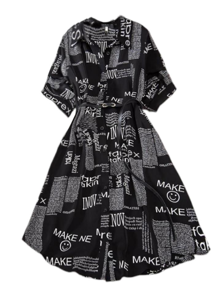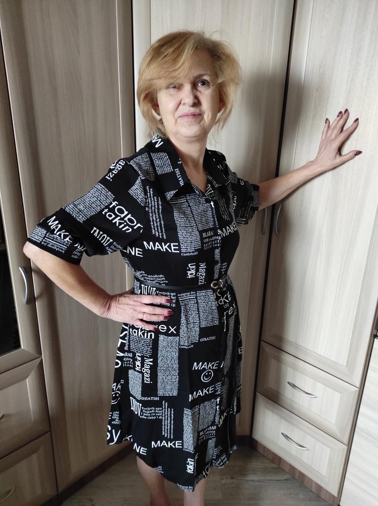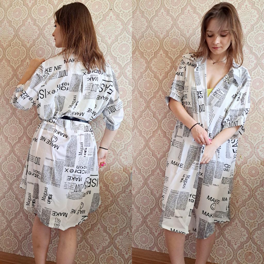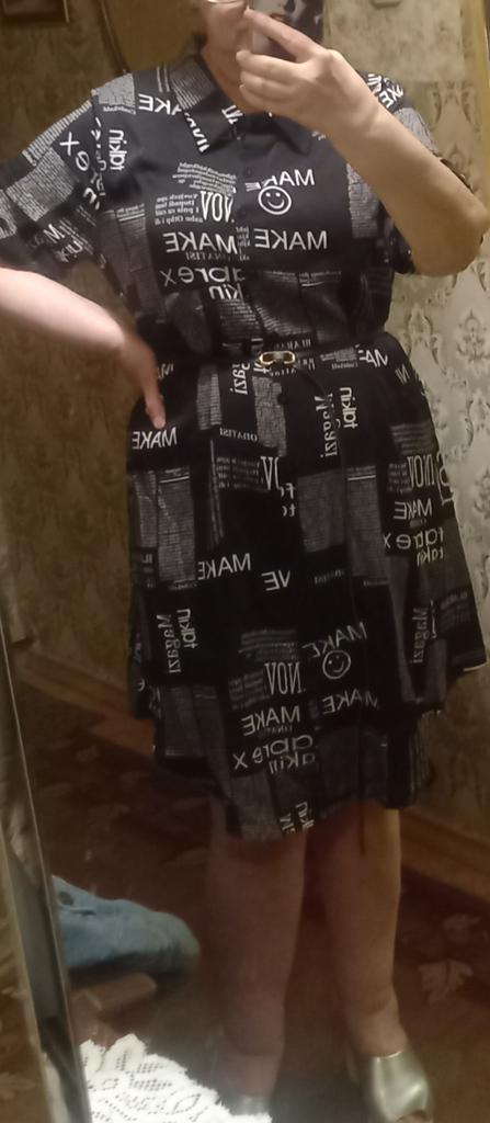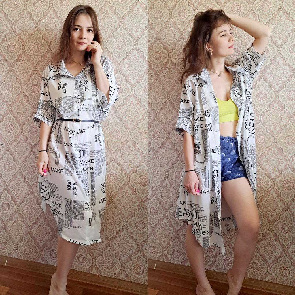The shirt dress with the letter print and belt π€©π€©π β»οΈDelivery time: 18 days to Germany. β»οΈβ»οΈScope of delivery: The delivery includes a short-sleeved casual blouse in the appropriate color and size. It is available in 3 different colors in sizes from M to 4XL. I ordered the product in white in size M and it fits me perfectly ππππ―π―π―π― . It looks very nice!!!ππππThe color is as shown. The stand-up collars emphasize the design of the product. I normally wear a size 36. I weigh 55kg and am 167cm tall (90-65-90 cm), with a cup size of 75B. You must order the product 1 size larger than your original size. It runs small. β»οΈβ»οΈ The blouse is perfect for everyday wear, for the office or restaurants. It is very easy to combine.ππ It looks great with jeans, trousers or on its own. ππ.I liked the design the most, namely this pattern print. It looks extraordinary.π I like these letters π―π―π―π―π! β»οΈMaterial composition: Polyester and cotton. This is how it is stated by the manufacturer. The fabric is light and comfortable on the skin, does not electrify. β»οΈβ»οΈConclusion: A beautiful shirt dress that you have to order a size larger. Thanks Joom and the sellerππππππ 5 stars π π π π π!