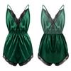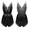 Men Sexy Lingerie Spaghetti Strap Lace Trimmed Satin Sleepwear Jumpsuit Nightwear