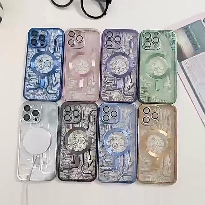 Luxury Line Mechanical Magnetic Wireless Charging Electroplated Case for iPhone 14 13 12 11 Pro Max All-inclusive Fall Protection Cover