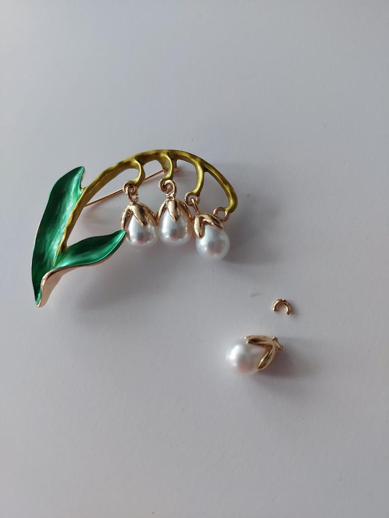 Cute Lily of the Valley Brooches For Women Gold Color Enamel Plant Brooch Pins Party Office Jewelry Gifts