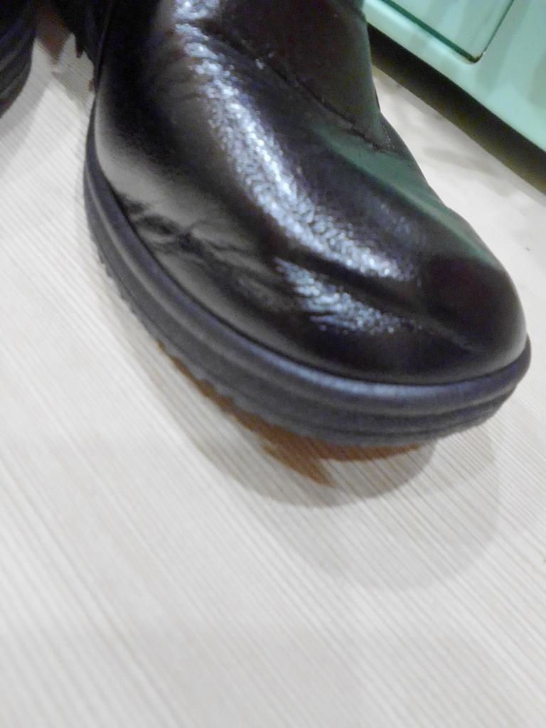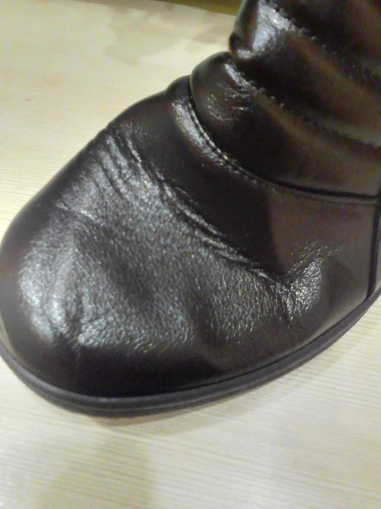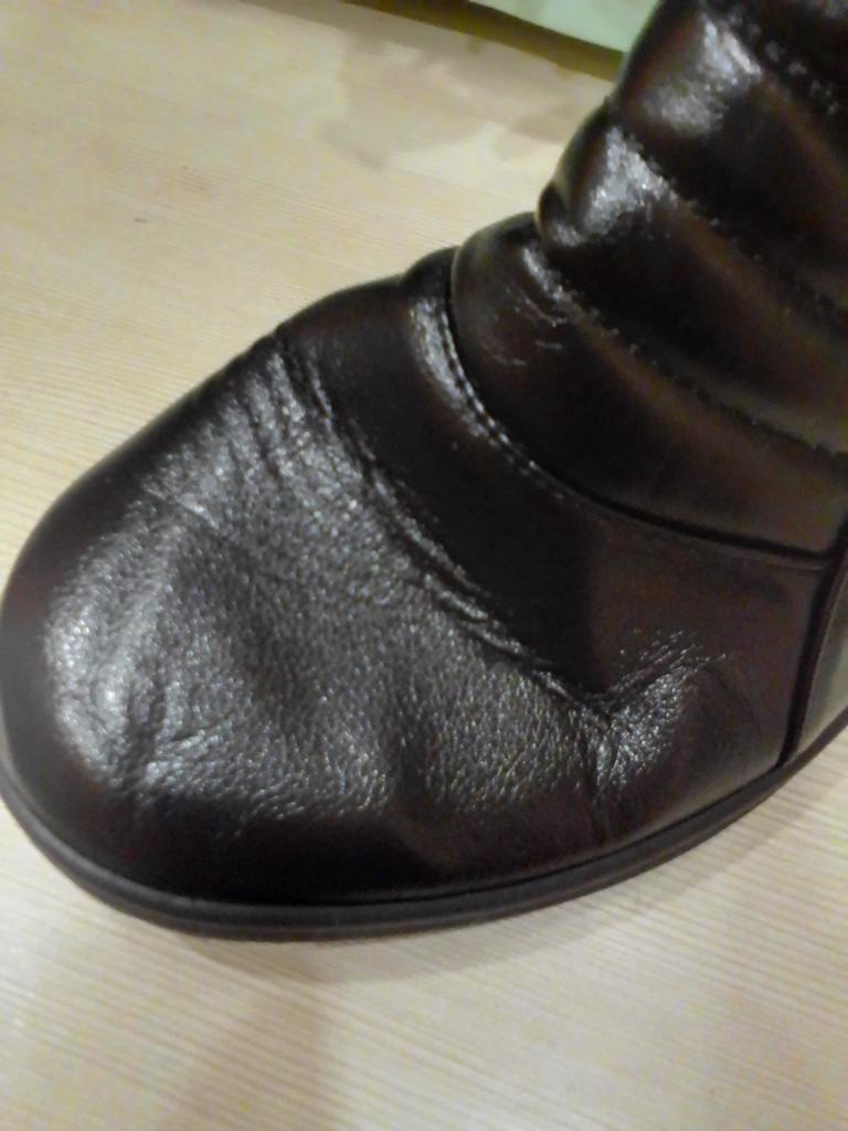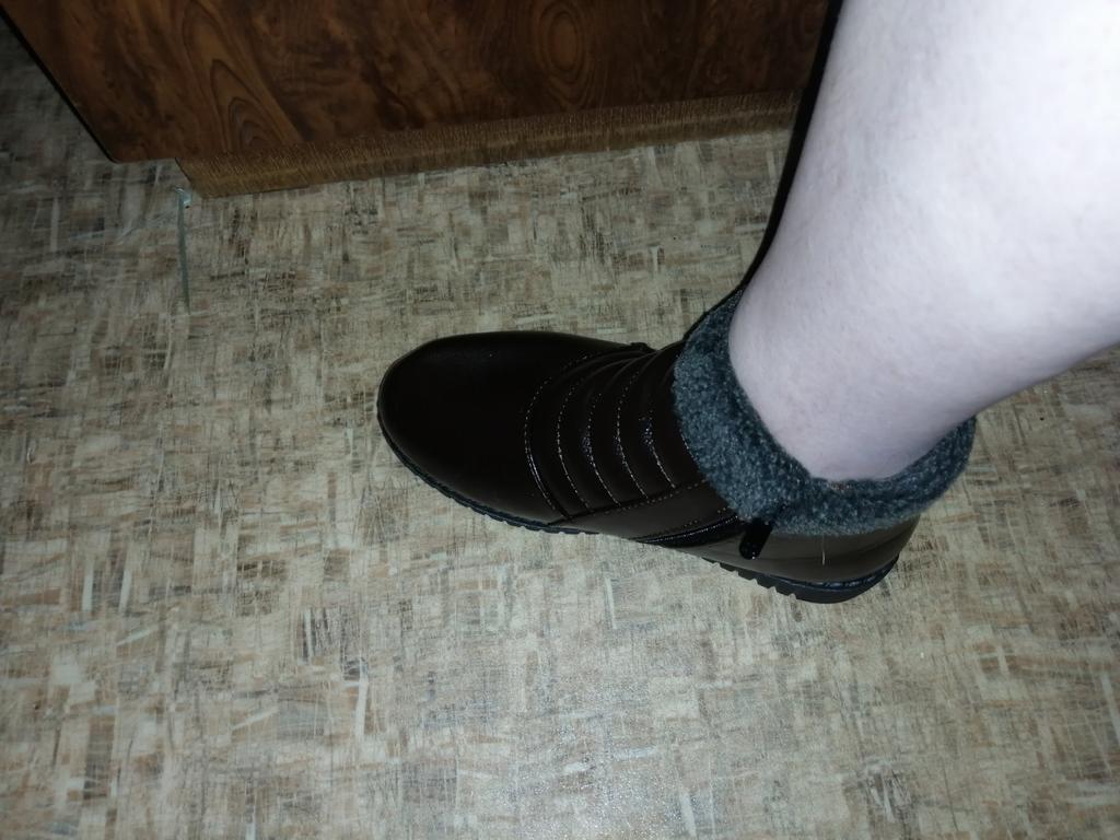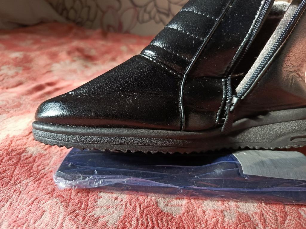 It's such a pity that they are too small, well, I've been trying to wear them in for days. According to the chart, they are 26.5 cm, mine are 25.5, I thought there would be some room, but no. If it were leather, it would stretch over time. And these boots don't have a chance, it's a shame. In the photo you can see how the toe sticks out, and the zipper won't close.