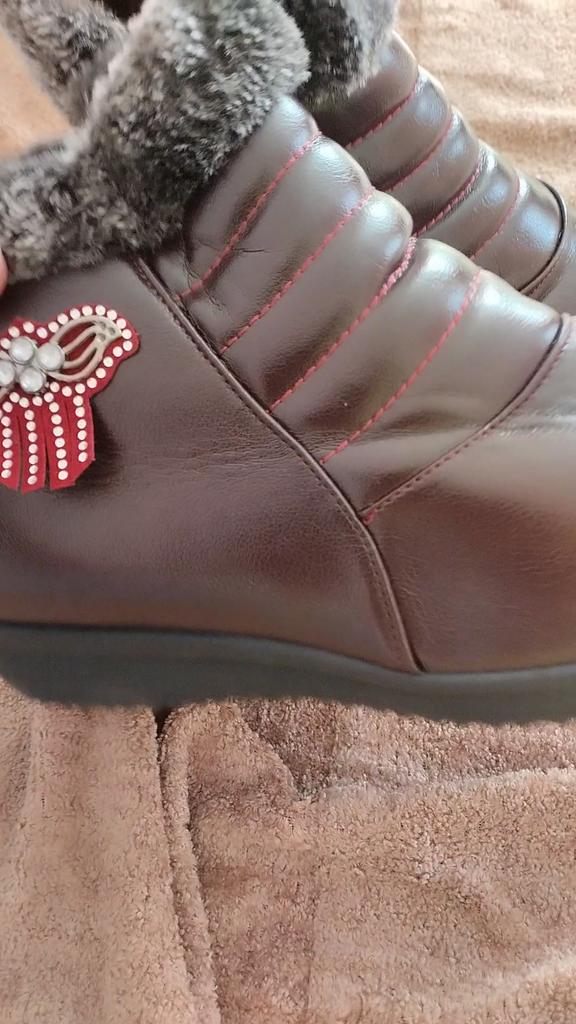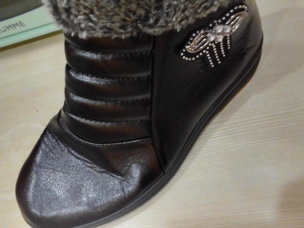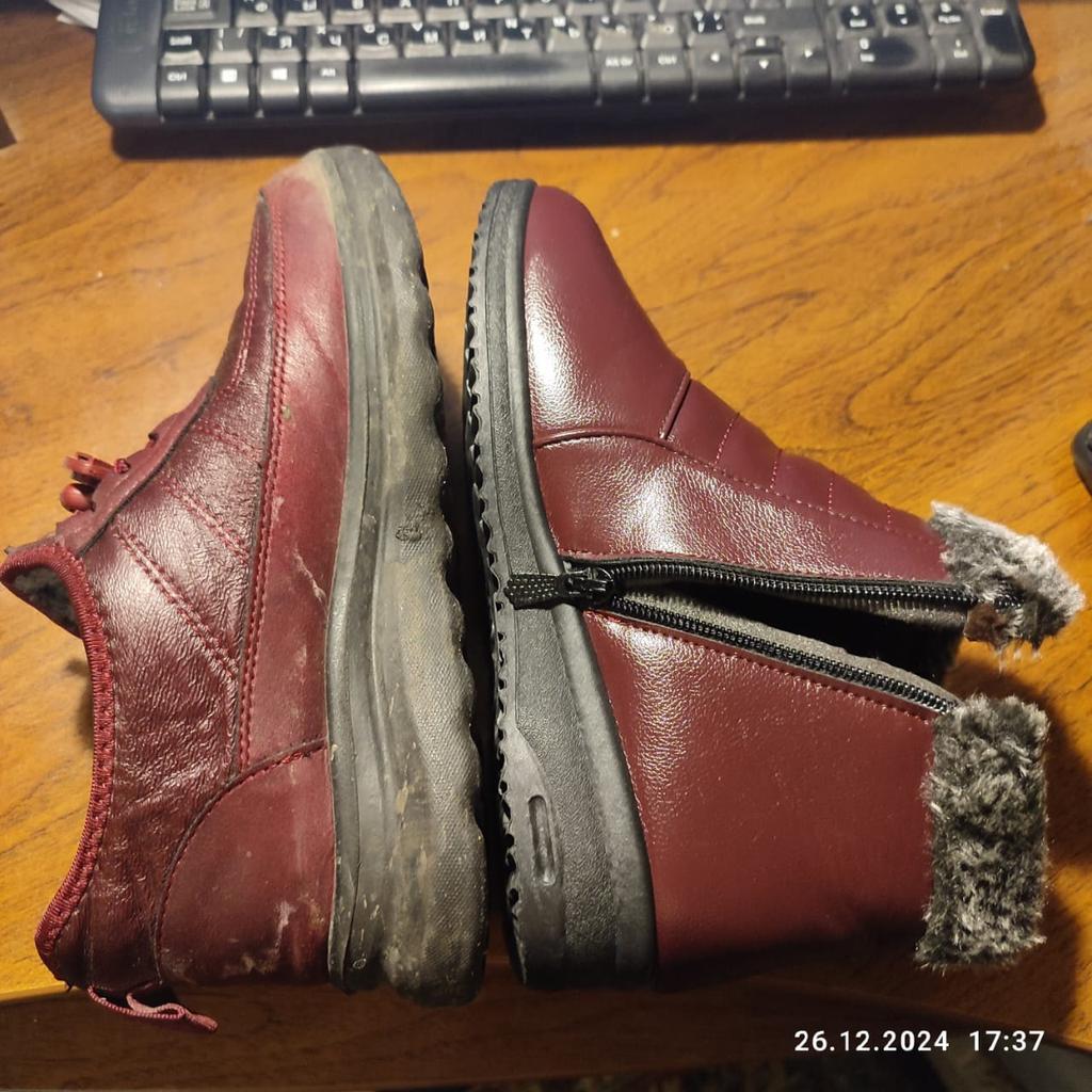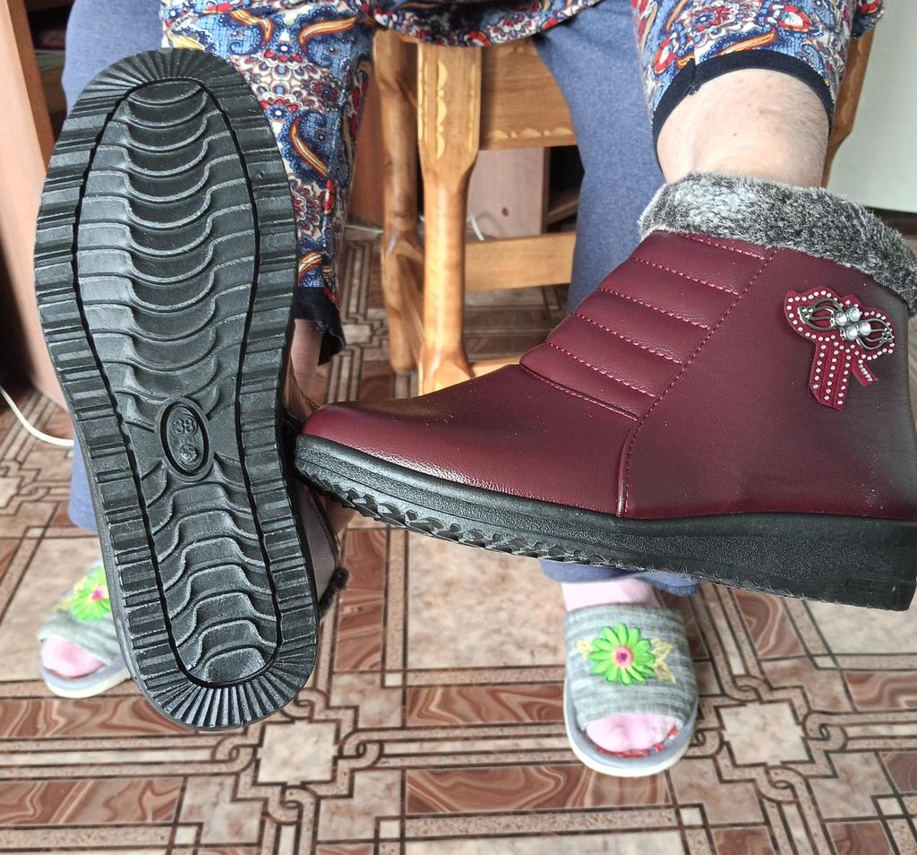 It's such a pity that they are too small, well, I've been trying to wear them in for days. According to the chart, they are 26.5 cm, mine are 25.5, I thought there would be some room, but no. If it were leather, it would stretch over time. And these boots don't have a chance, it's a shame. In the photo you can see how the toe sticks out, and the zipper won't close.