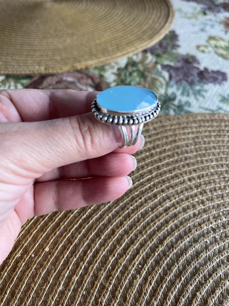 Blue Chalcedony Gemstone Handmade Solid 925 Sterling Silver Promise Ring Jewelry