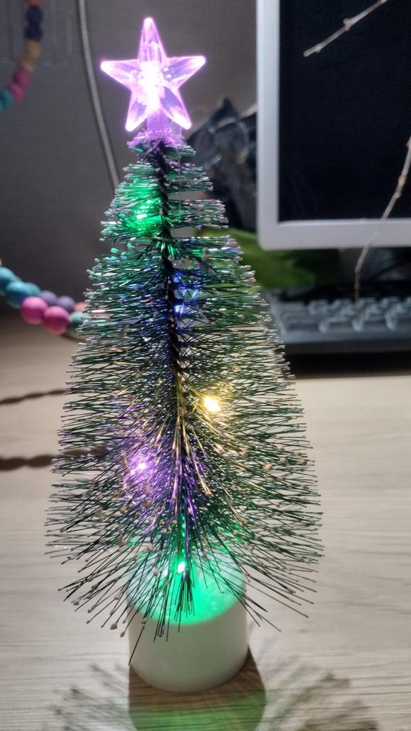 Excellent decoration for the New Year. It will look great on your desktop, improving your mood. The tree glows in different colors, there is a star on top. I recommend buying it