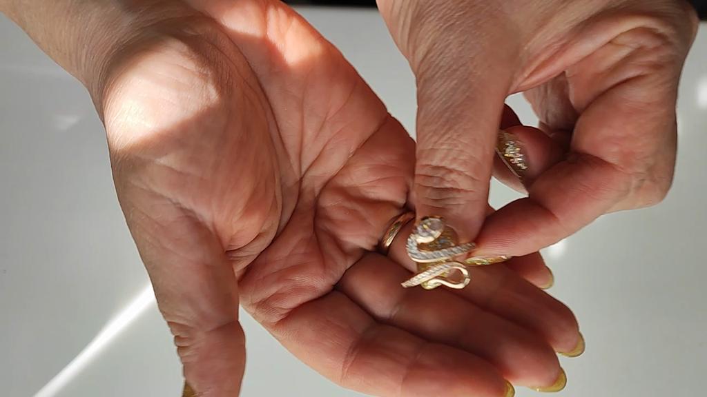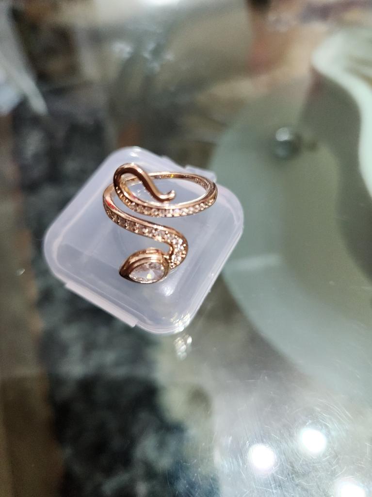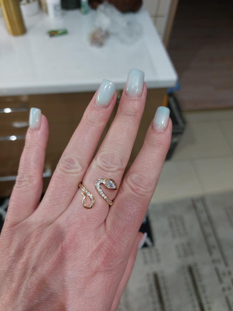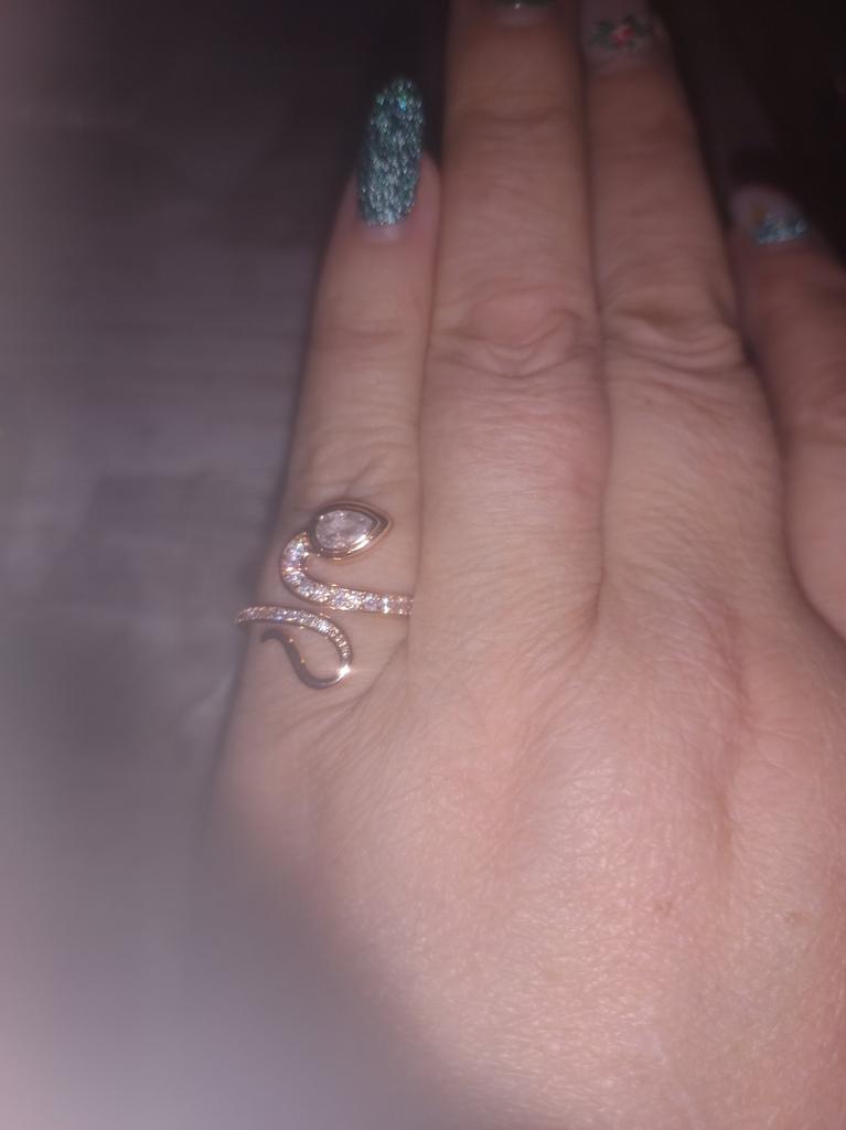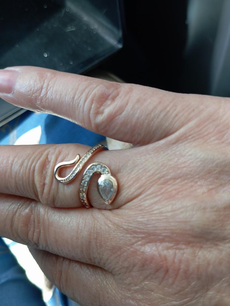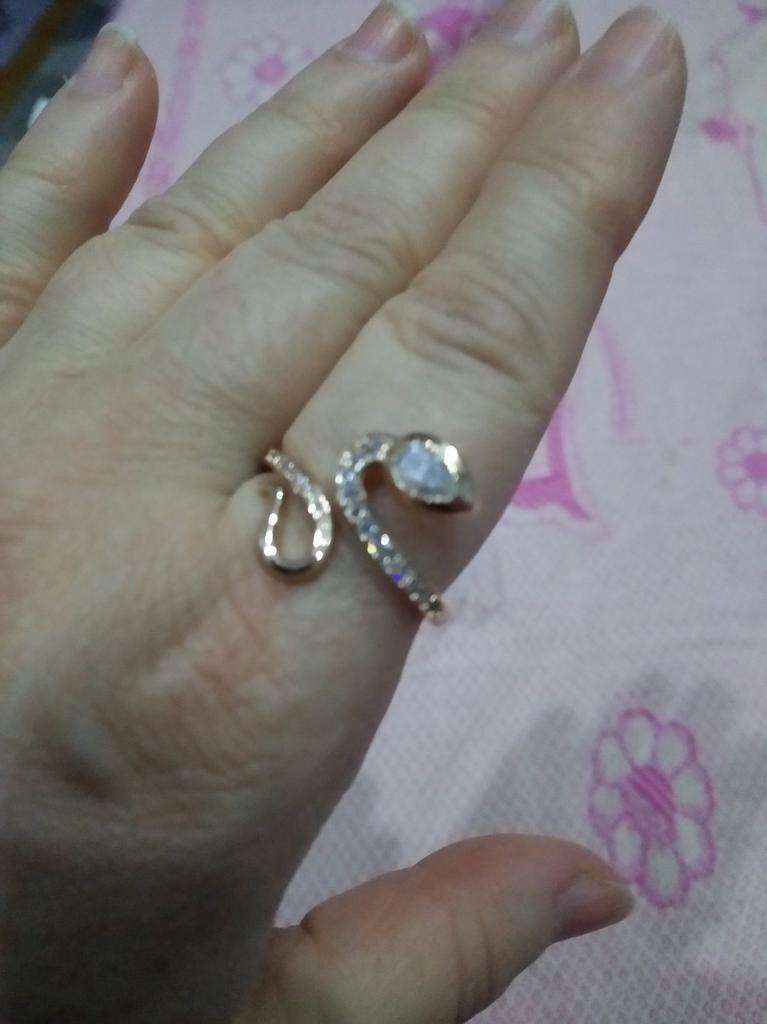 Very beautiful ring. Looks like gold. Stones sparkle. Shaped like the symbol of the year. Thank you for the pleasure!