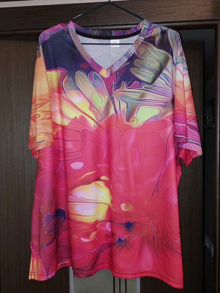 3D Floral Print Women Short Sleeve Tops V Neck Summer Lovers Couples T Shirt