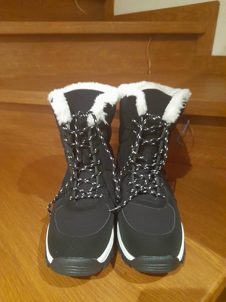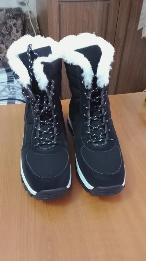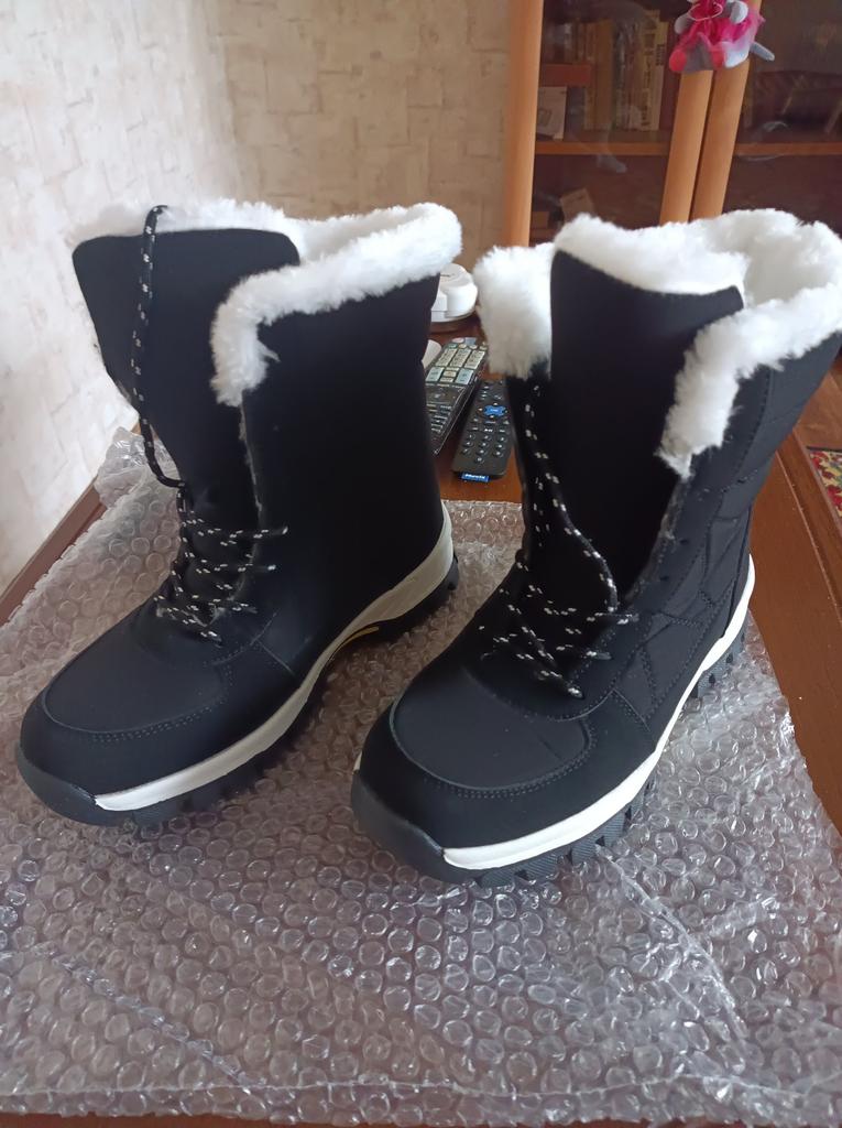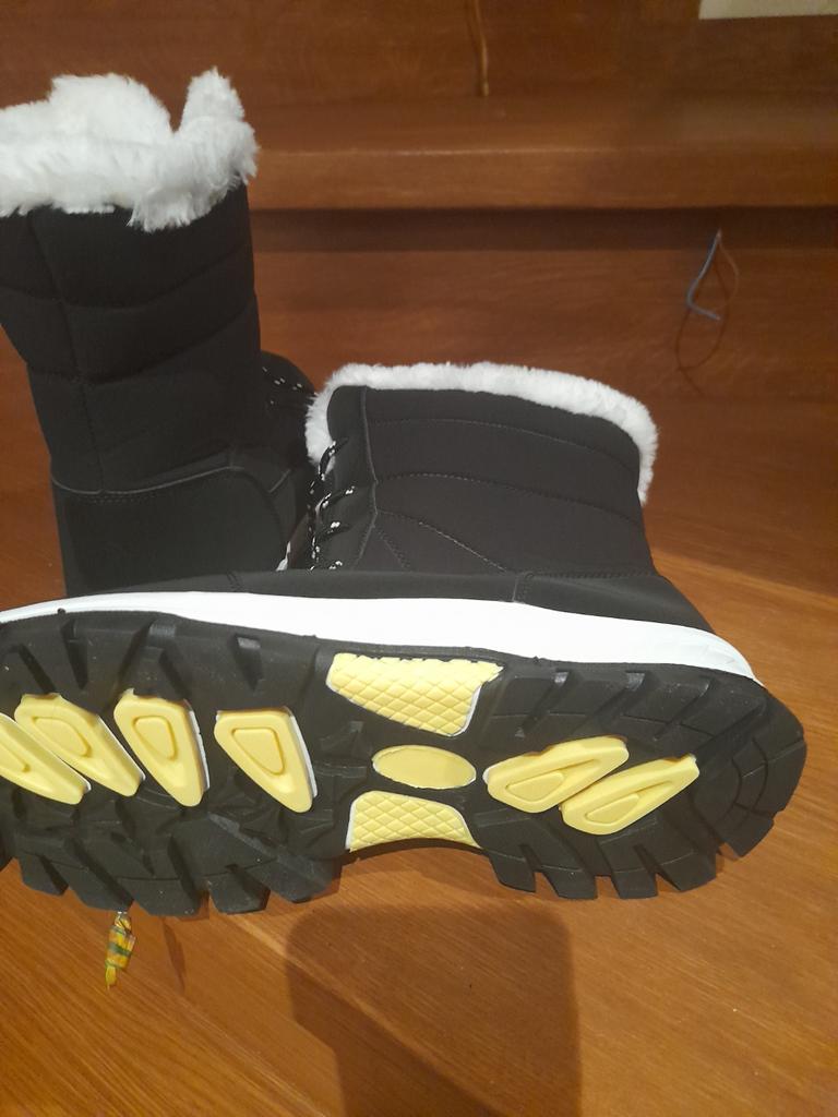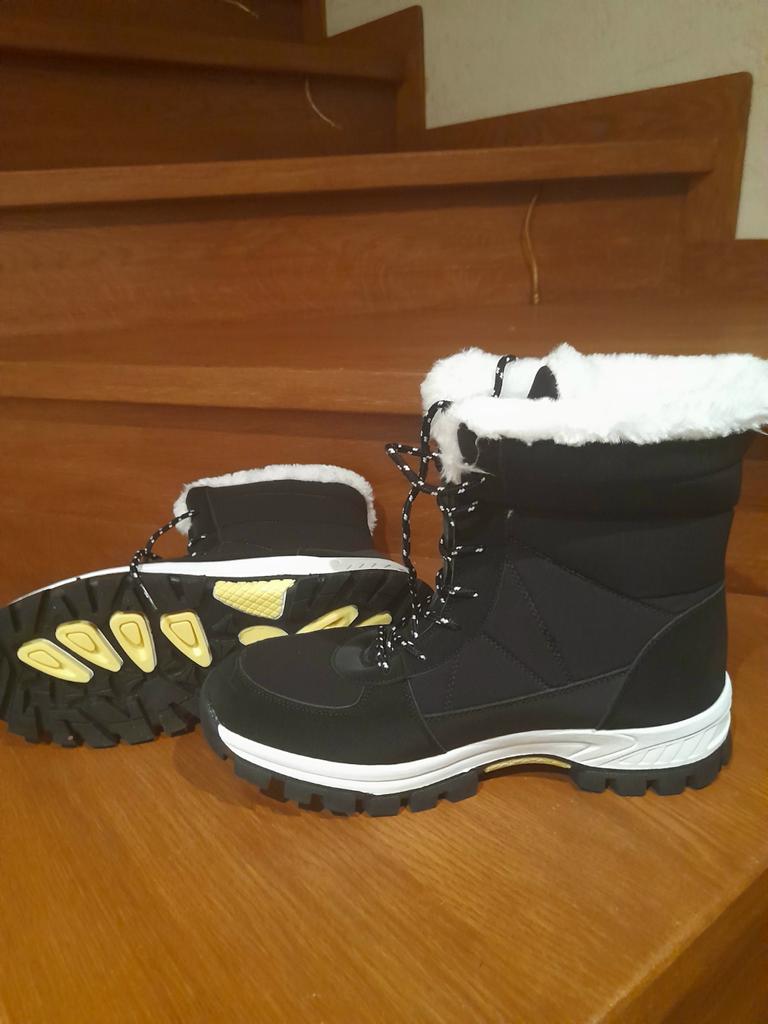 New boots so far, my favorites, I had similar ones but I like these even more, they are super thick on the inside, all made of very warm fur, plus it doesn't have any logo or anything so I love that it is like that, the color is easy to combine, and the black and white laces give it a very nice touch, I assure you that your foot will not be cold, in addition to having a very comfortable sole with each step. The quality is also very good and the measurements correspond to those specified by the seller.