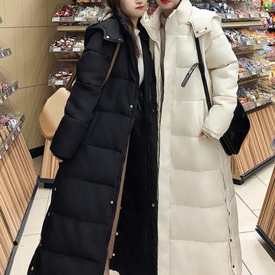 Detachable Hat Long Knee Length Down Jacket Winter Thickened and Slimming Diamond Checkered Jacket Women's Long Jacke