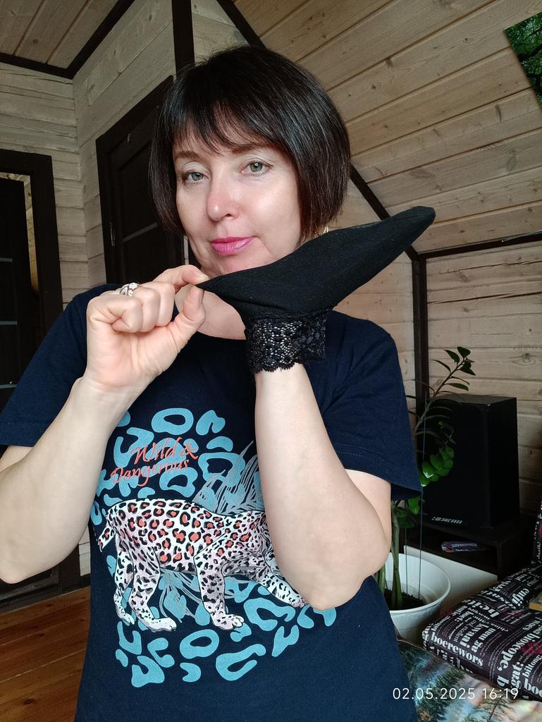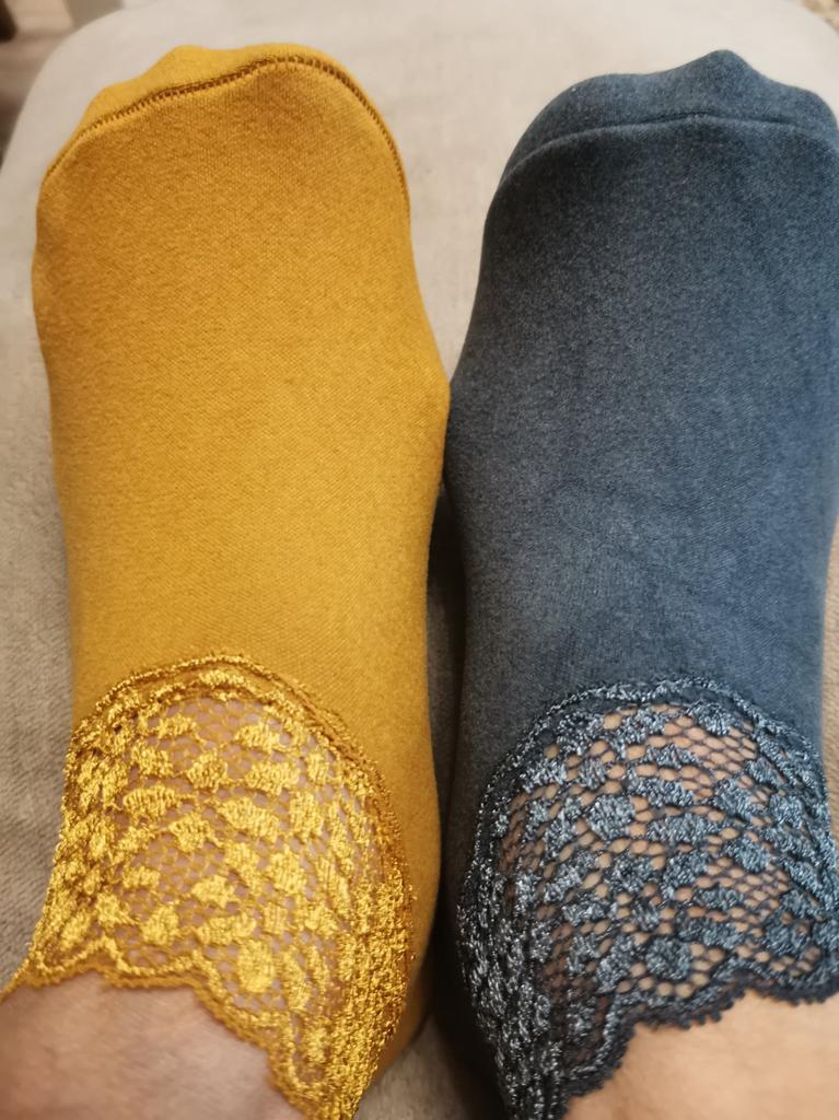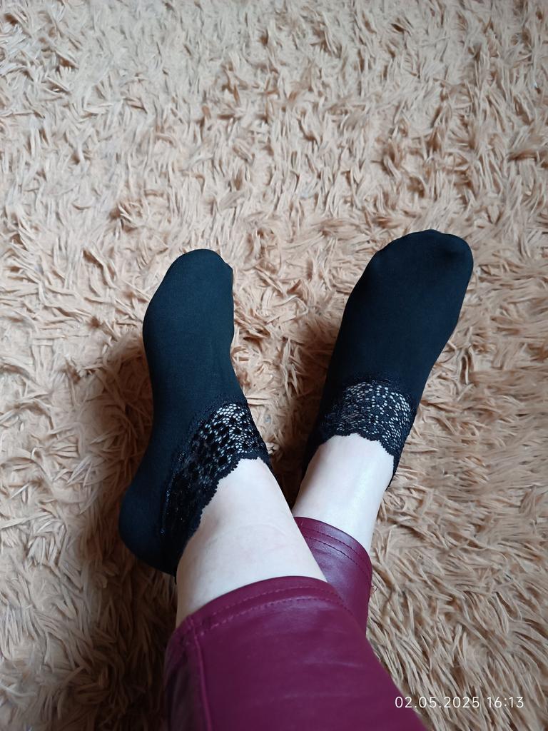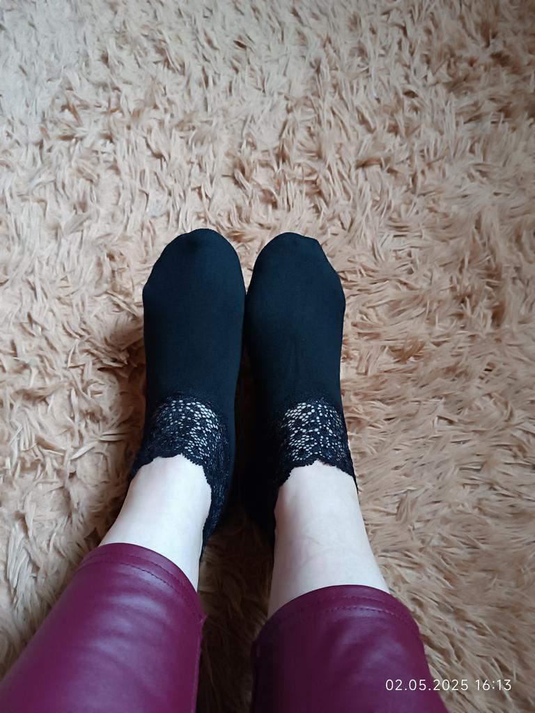 I wear such socks with pleasure. This time, in the place where the elastic is sewn on, the lace is a bit tight, it is not very convenient to put on. For a small size and a thin foot, it might be convenient.