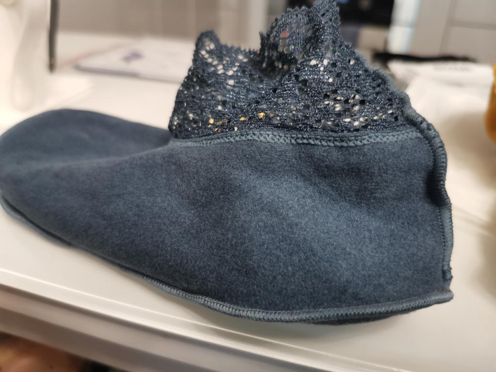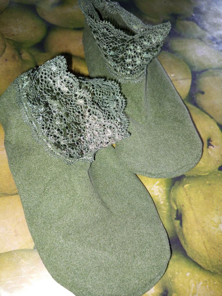It is impossible to put these socks on a woman's foot, the lace does not stretch. If there was a correspondence between the foot and the circumference of the lace, it would be possible to try for a baby, but as it is, only for dolls. I give one star for the design. But it is not needed if the socks cannot be put on