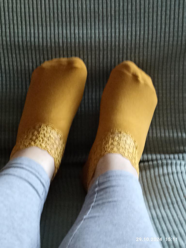 Cozy, warm socks. I bought it in three colors: yellow, coffee, blue. Only yellow ones fit my 38. There is a downside: you can feel the seam on your fingers. In the other colors I couldn't even pull them onto my heel.
