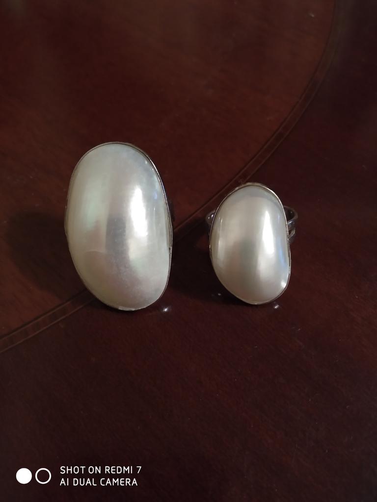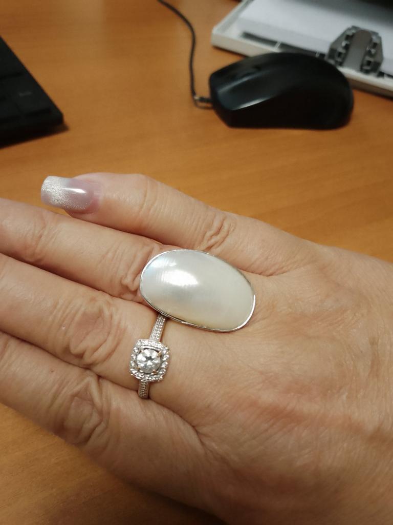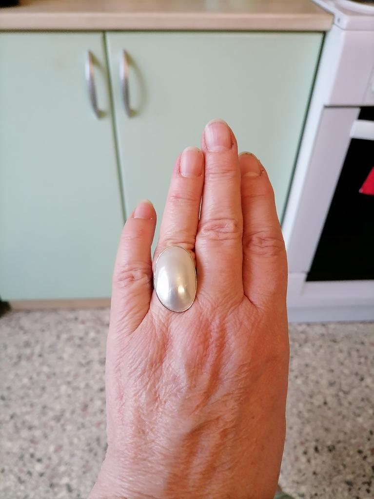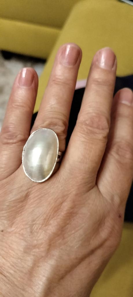 Wonderful ring, large mother of pearl, looks like pearls, very pleased with the purchase