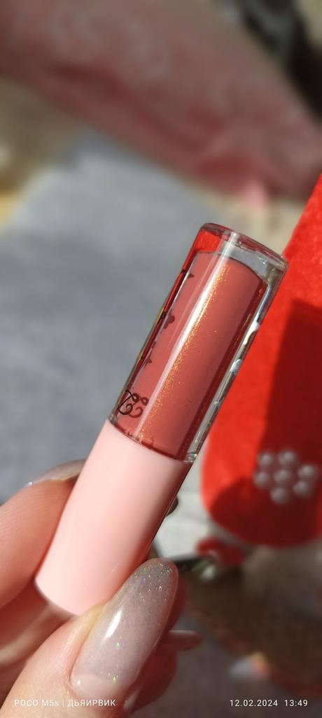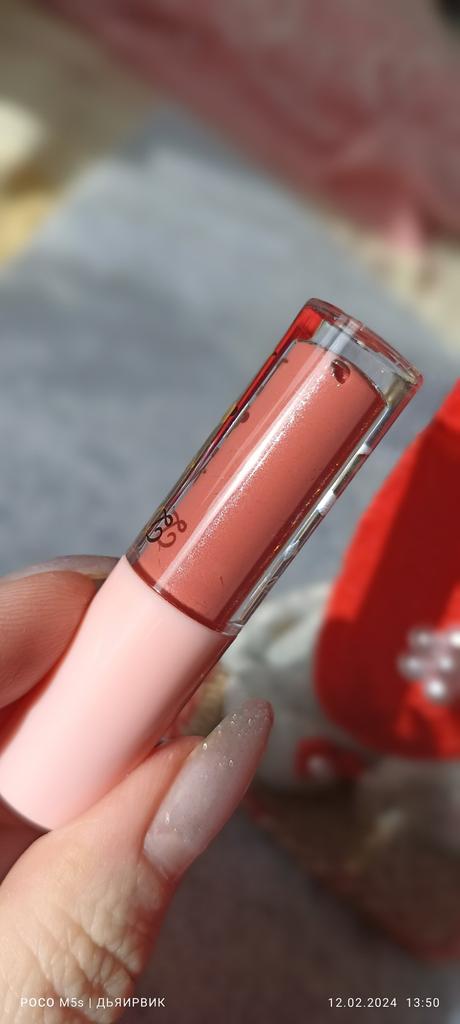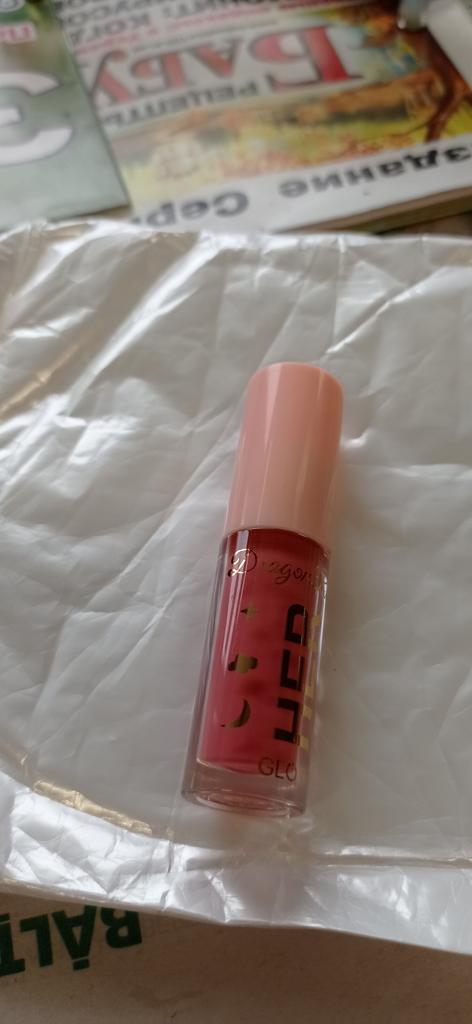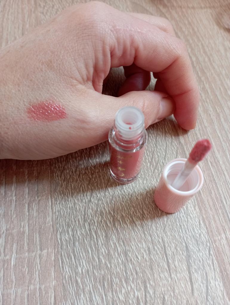 Ordinary lip gloss, mini packaging. It is convenient to take a handbag with you and not only can you just put it in your pocket and it will not take up much space. 1 minus does not correspond to the color that should have been in the picture, it should have been brighter, in fact it is pale and not very pigmented, I am a little disappointed.