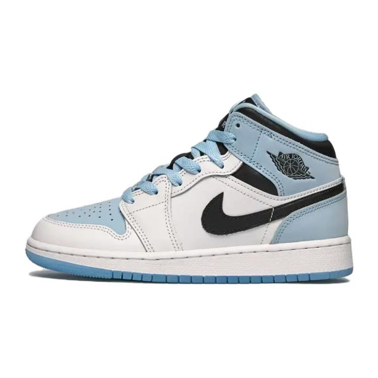 Air Jordan 1 Mid SE GS White Ice Blue Kids Sneakers Black DV1337-104