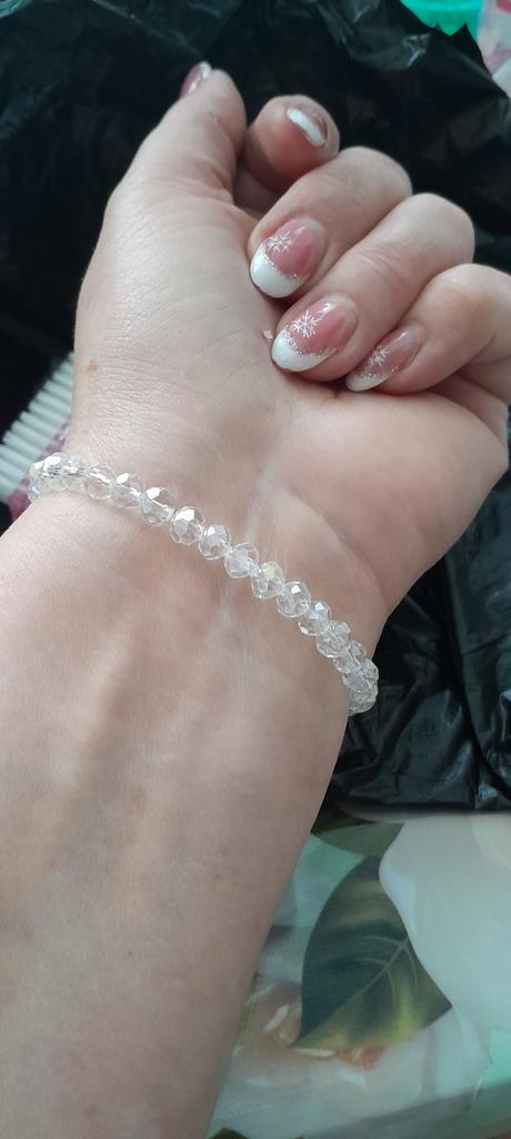 A very beautiful delicate bracelet. It sparkles. I took it to go with the same beads. Everything is very elegant! And in the summer it will be simply dazzling in the sun.