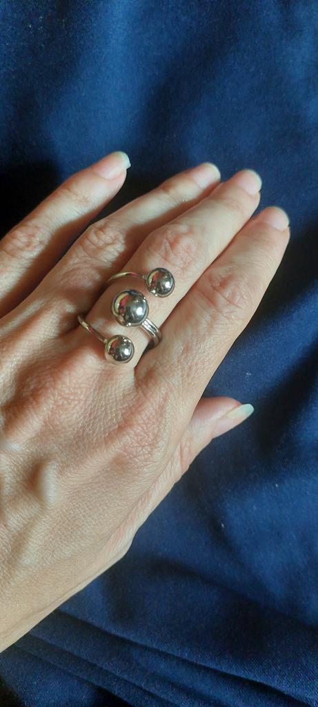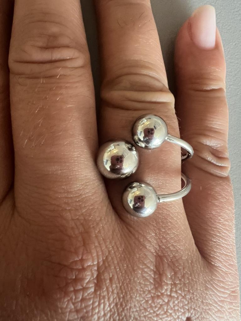 ANENJERY Irregular Three Round Ball Ring for Women Fashion Exaggerated Finger Rings Jewelry Accessory Personality