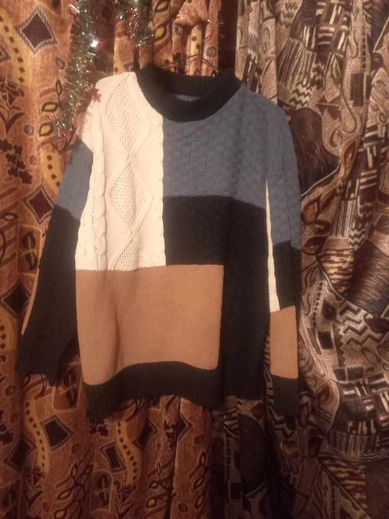 Well, it's okay, I guess. You can wear it, especially since I have jeans (matching the different colored squares) that this jumper will go with. I didn't notice right away that it was labeled as men's, but that doesn't matter. Overall, out of the entire order, this is the only item that is more or less okay and can be worn.