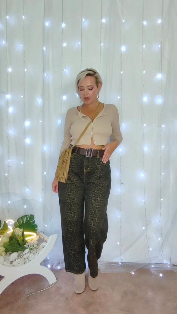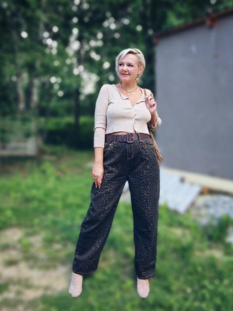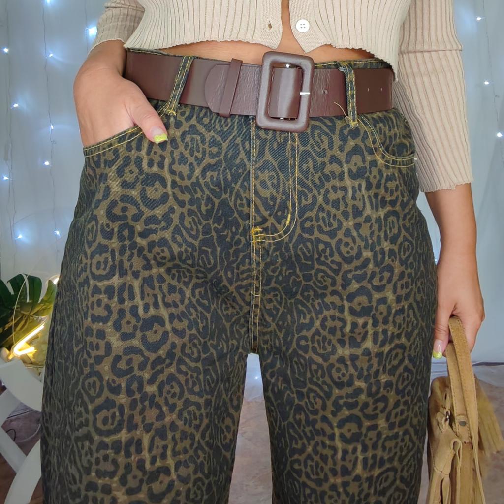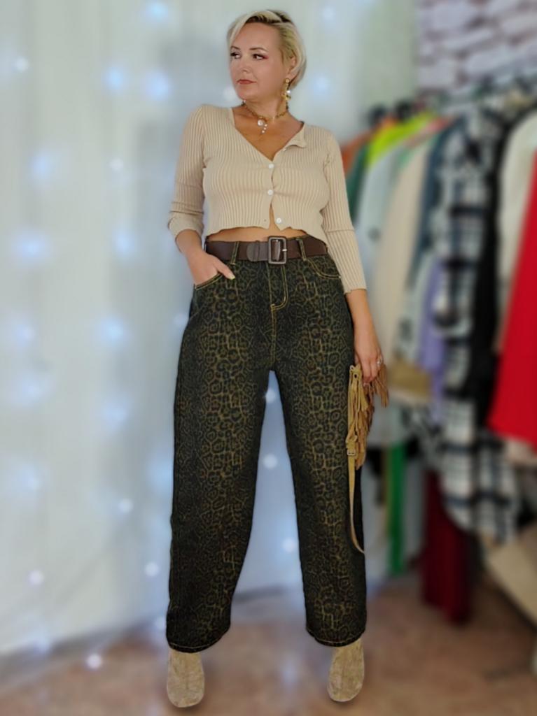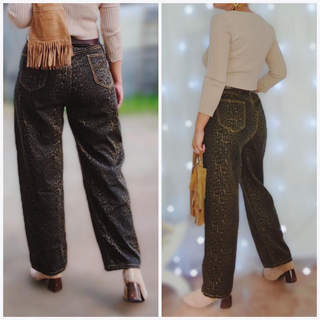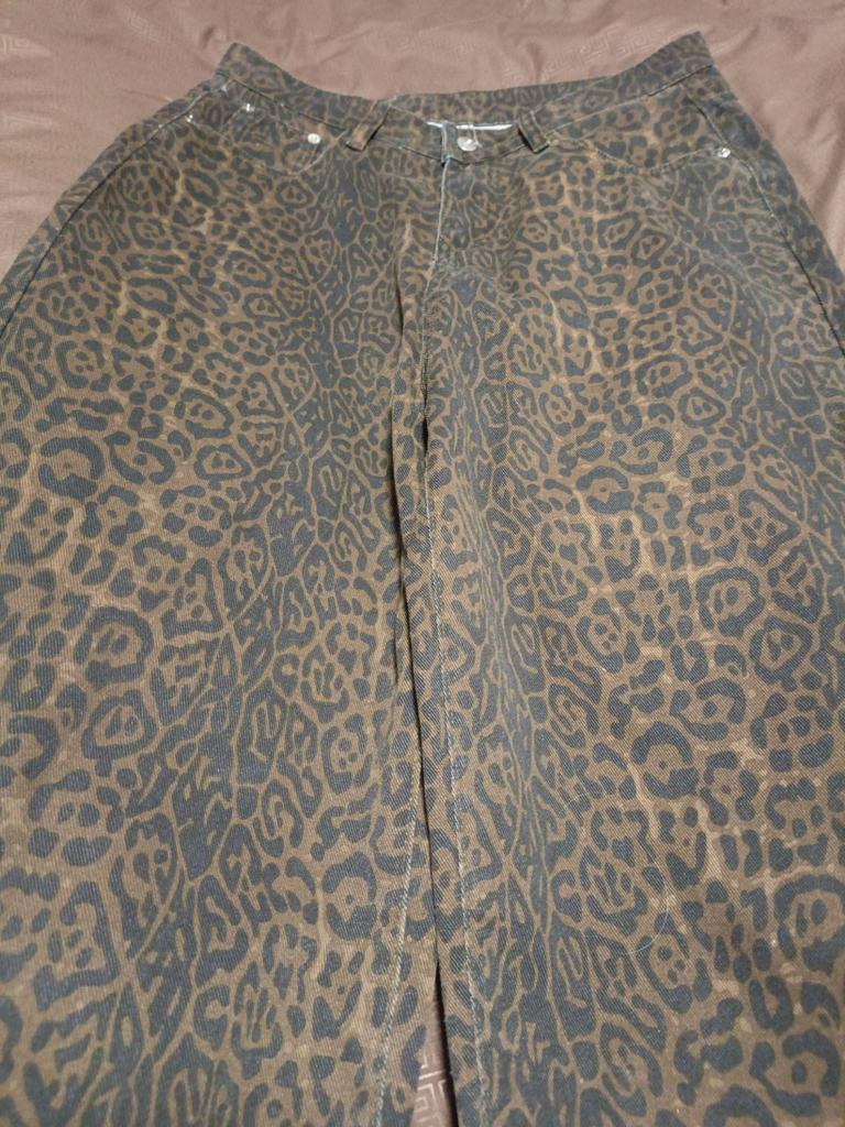 Tan Leopard Jeans Women Denim Pants Female Oversize Wide Leg Trousers Streetwear Hip Hop Vintage Clothes Loose Casual
