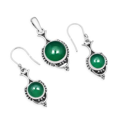Authentic Silver Jewelry Set, Emerald Stones Silver Set, Ottoman Design Necklace, Earrings, and Ring Set, Unique Gift for Women