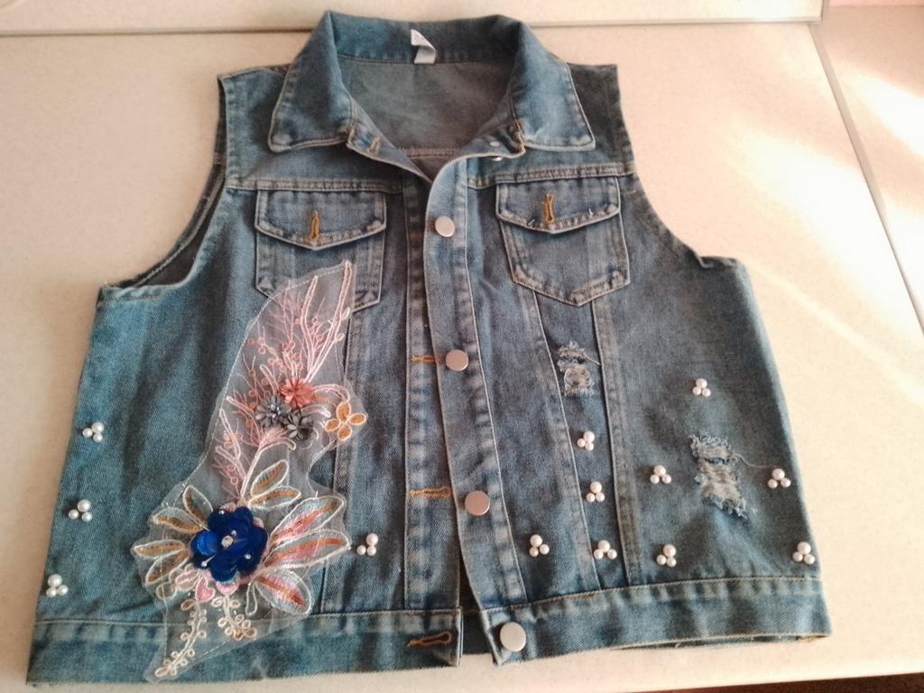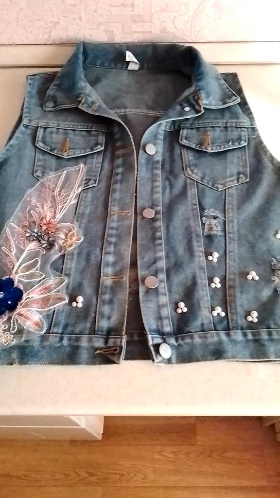 Denim Vest Women's Short Autumn Patch Beaded Sleeveless Student Tops