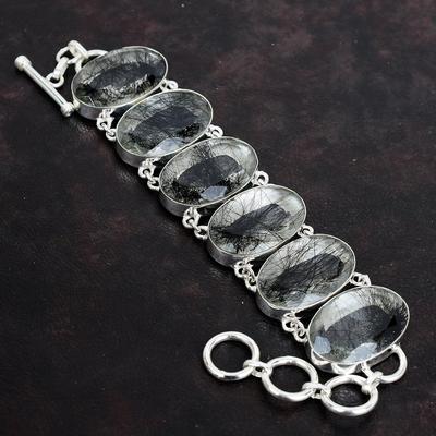 Natural Black Rutile Gemstone Handmade 925 Sterling Silver Bracelet 7-8" h4K09