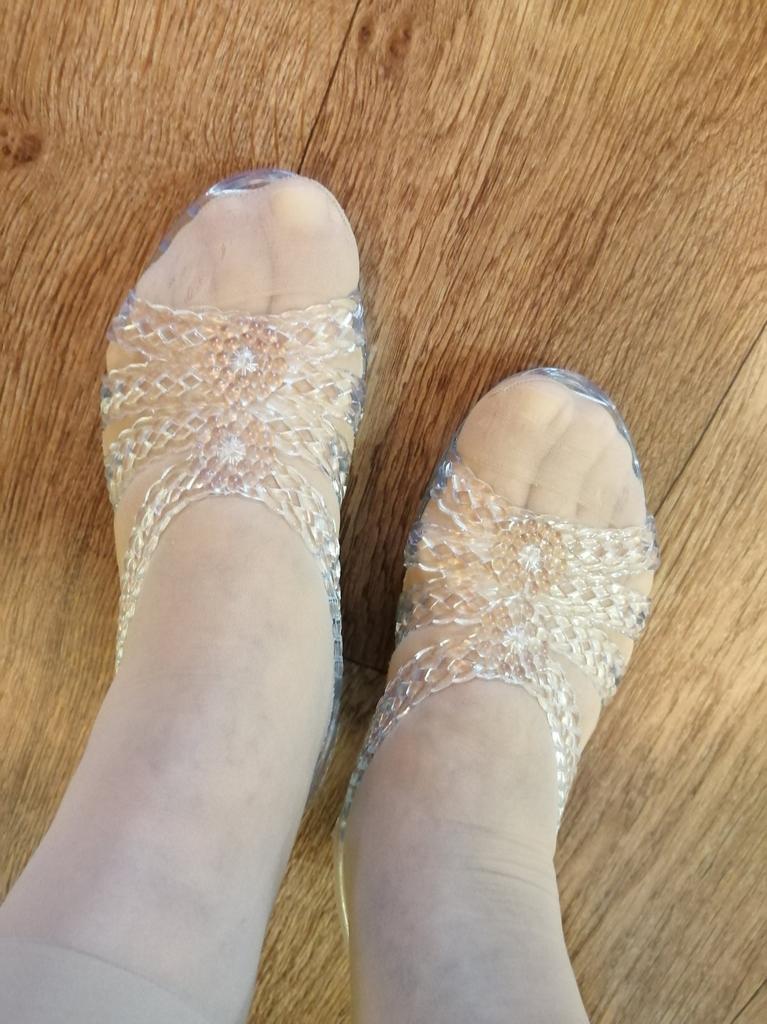Summer Crystal Sandals Transparent Thick Heel Plastic Sandals Ladies Wedge Heel Non-slip Beach Shoes
