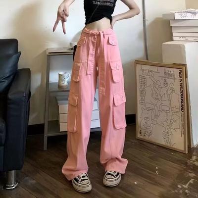Vintage Pink Cargo Pants Women 2023 Loose Slipper Denim Pants Oversized Jeans Pants for Women Hip Hop Trousers