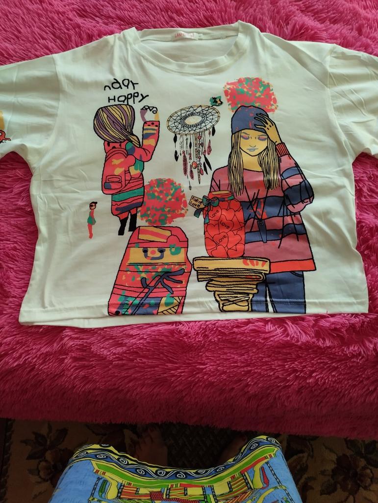 Soft fabric, bright pattern. Good for home wear! I took a size larger, my parameters: o/g 100, o/b 92.