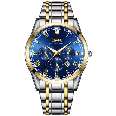 OPK Quartz Watch with Date Luminous Stainless Steel Watch for School or Gold Blue Men's Display, Waterproof, Diamonds, Stylish, Fashionable, Classic,