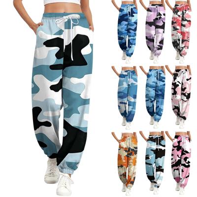 Women's Sports Pants With Pockets Fashion Camouflage Print Elastic Waist Pants Casual Sweatpants Pants